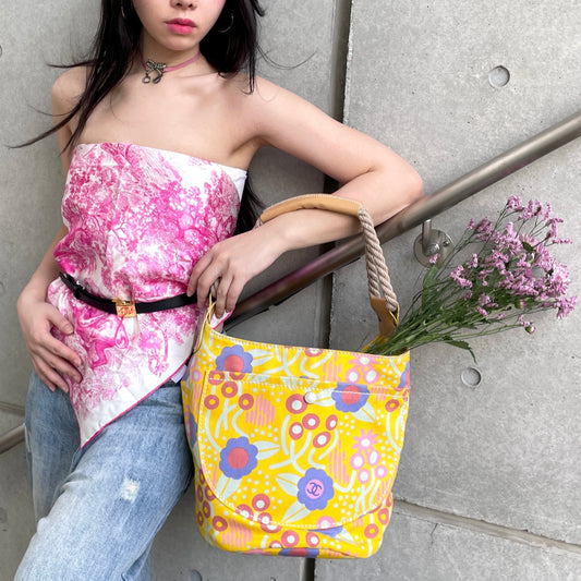RARE☆☆☆CHANEL High Summer Flower Rope Bucket Shoulder Bag Yellow Limited Edition