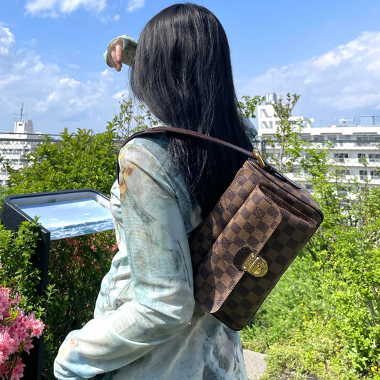 RARE☆☆☆LOUIS VUITTON 2008 Damier Ravello PM Shoulder Bag Brown & Gold