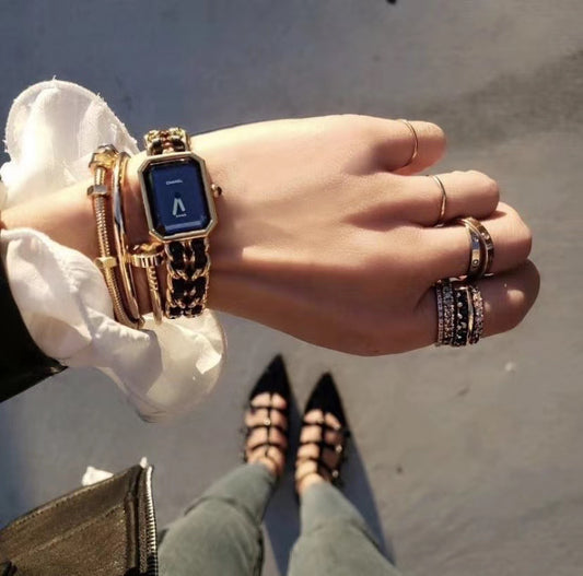 RARE☆☆☆☆CHANEL Matelassé Première Quartz Watch S Size Gold & Black