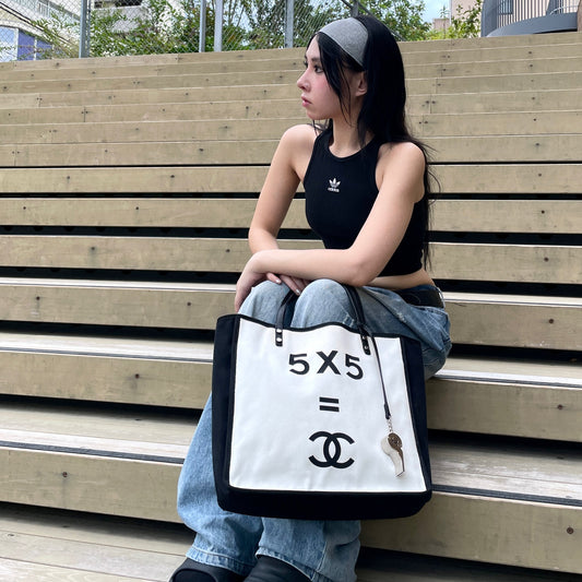 RARE☆☆☆CHANEL 2014 5x5=CC LOGO Tote Shoulder Bag White & Black