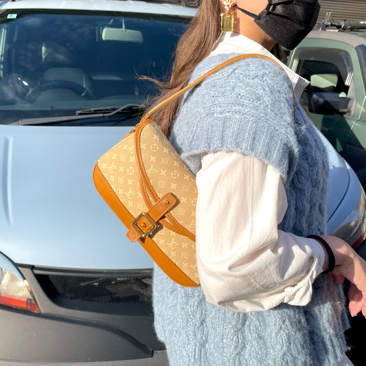 LOUIS VUITTON 2007 Monogram Mini Lin Saumur Shoulder Bag M95314 Beige & White