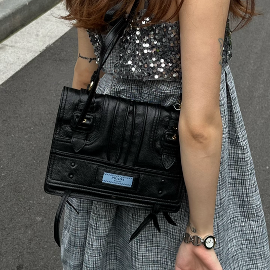 RARE☆☆☆PRADA Etiquette Leather Messager Shoulder Flap Bag Black