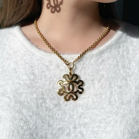 CHANEL 1995 CC LOGO Clover Necklace 95P Gold