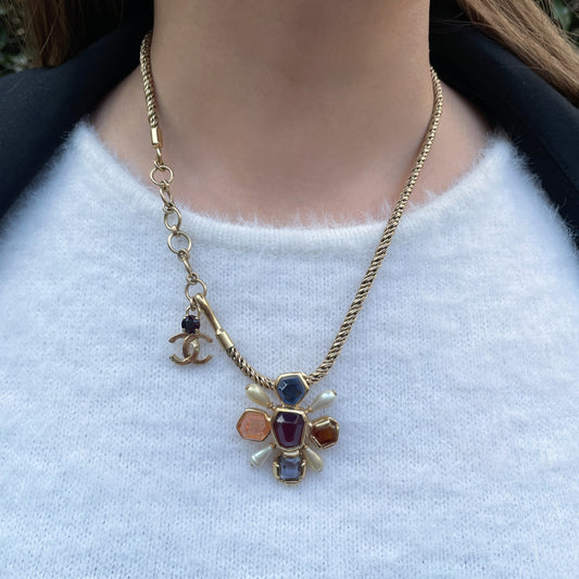 RARE☆☆☆☆CHANEL 2001 CC LOGO Gripoix Necklace 01A Gold & Multi-Color