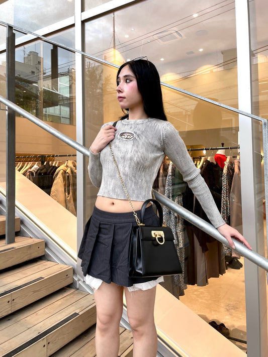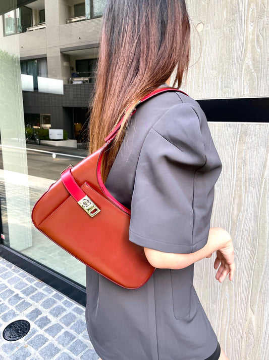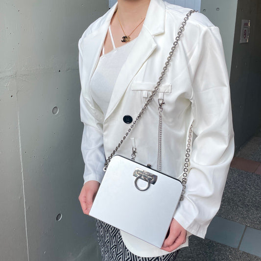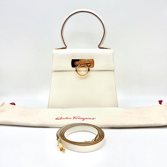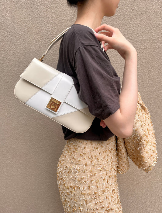 RARE☆☆☆ Salvatore Ferragamo Gancini Bicolor One-Shoulder Bag White Beige