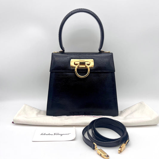 Salvatore Ferragamo Gancini Top Handle Bag Black GHW