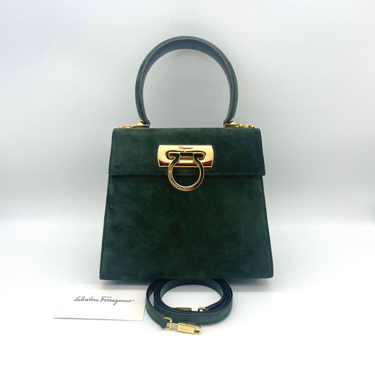 RARE☆☆☆ Salvatore Ferragamo Gancini Handbag Green