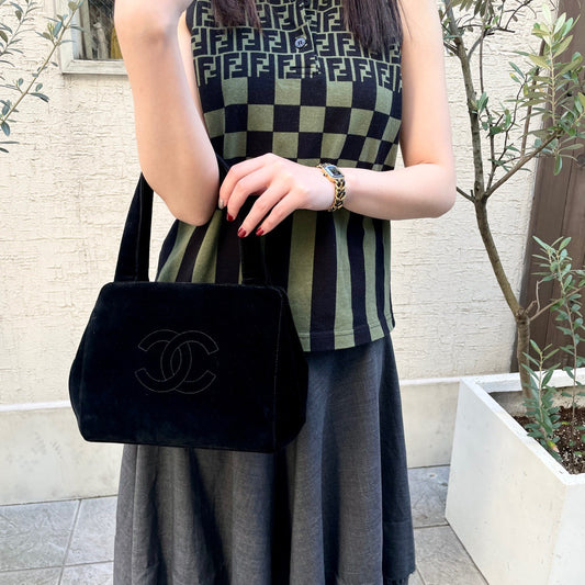 RARE☆☆☆CHANEL Velvet Jumbo Coco Mark Handbag Black