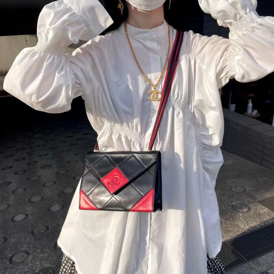CHANEL Lambskin Vintage Shoulder Bag/Black x Red