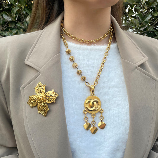 RARE☆☆☆CHANEL Coco Mark Pendant Gold Ball Necklace