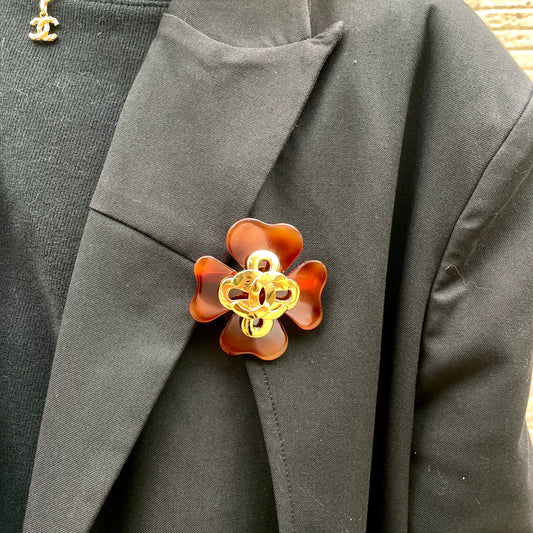Afar Vintage Pre-owned CHANEL Tortoiseshell four-leaf coco mark brooch 95P