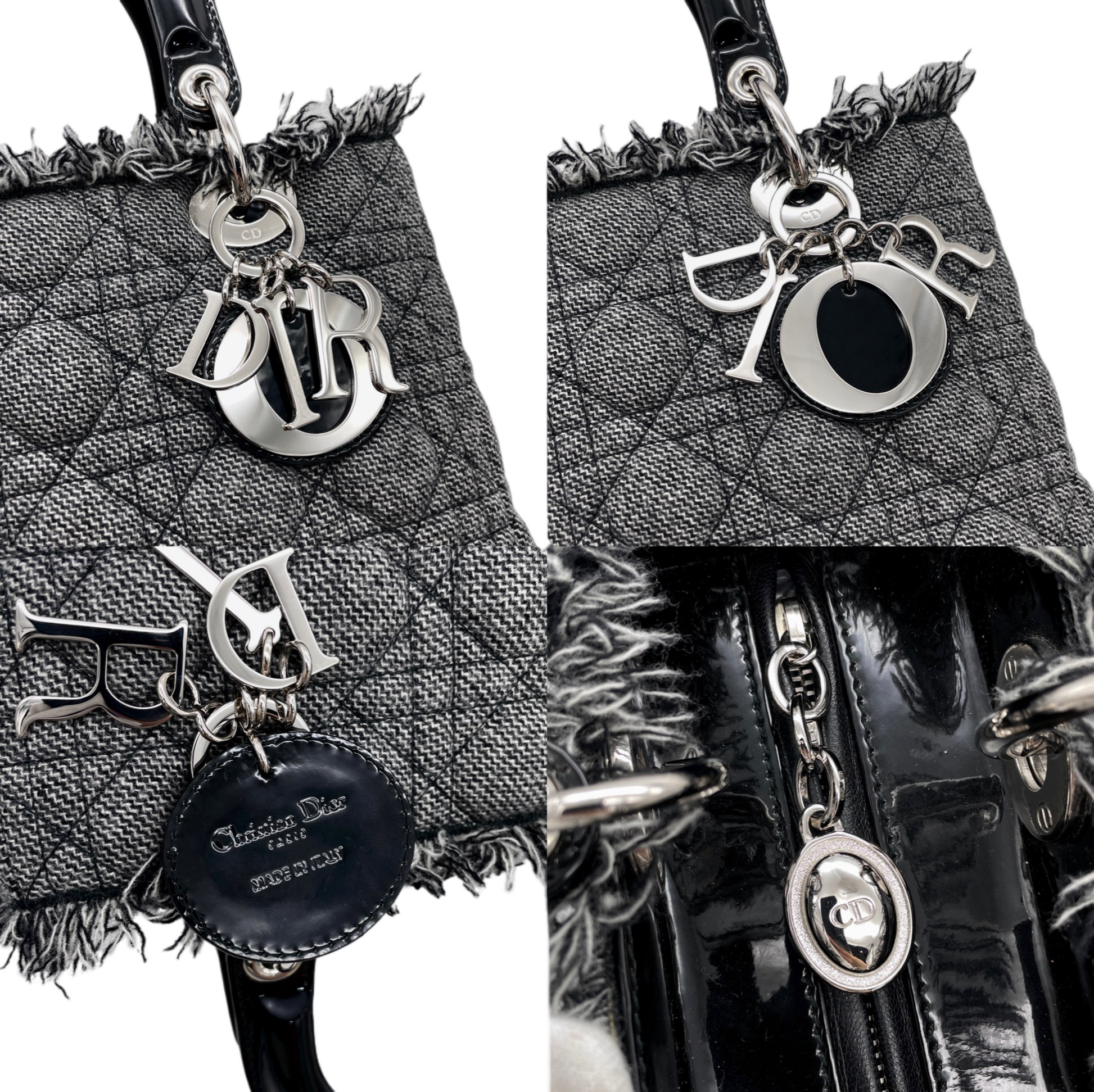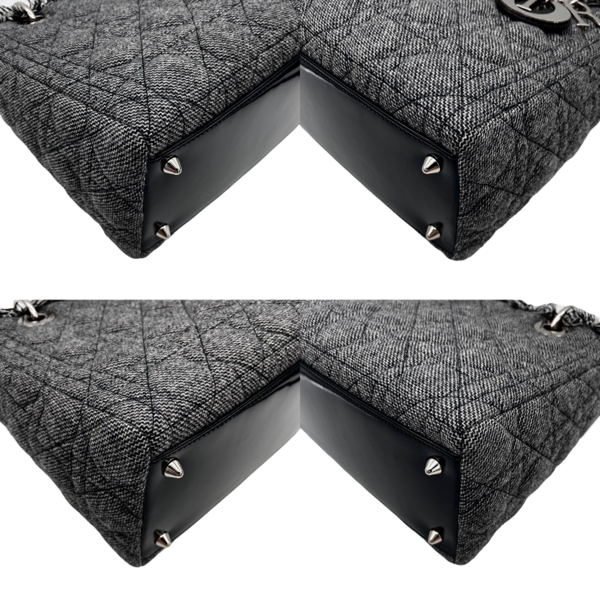 RARE☆☆☆CHRISTIAN DIOR Lady-Dior Cannage・Denim 2-Way Tote Hand Bag GM SHW Gray & Black