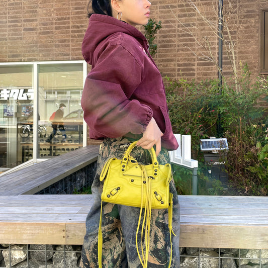 RARE☆☆☆☆Balenciaga The City Mini 2Way Hand Bag with Strap Neon Yellow & Antique Brass