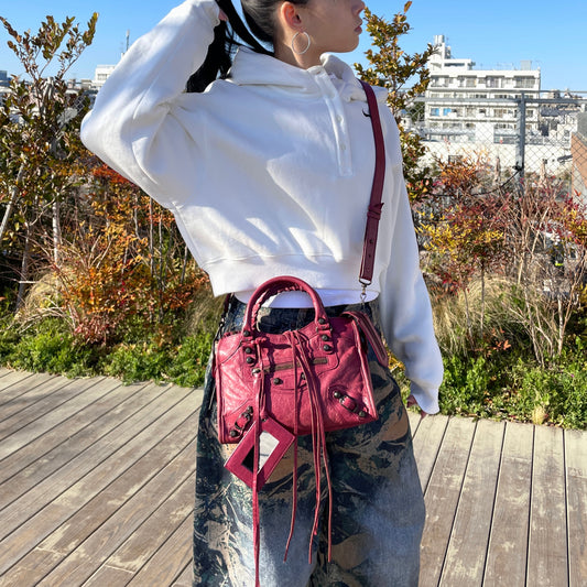 RARE☆☆☆☆Balenciaga The City Mini 2Way Hand Bag with Strap Burgundy & Antique Brass