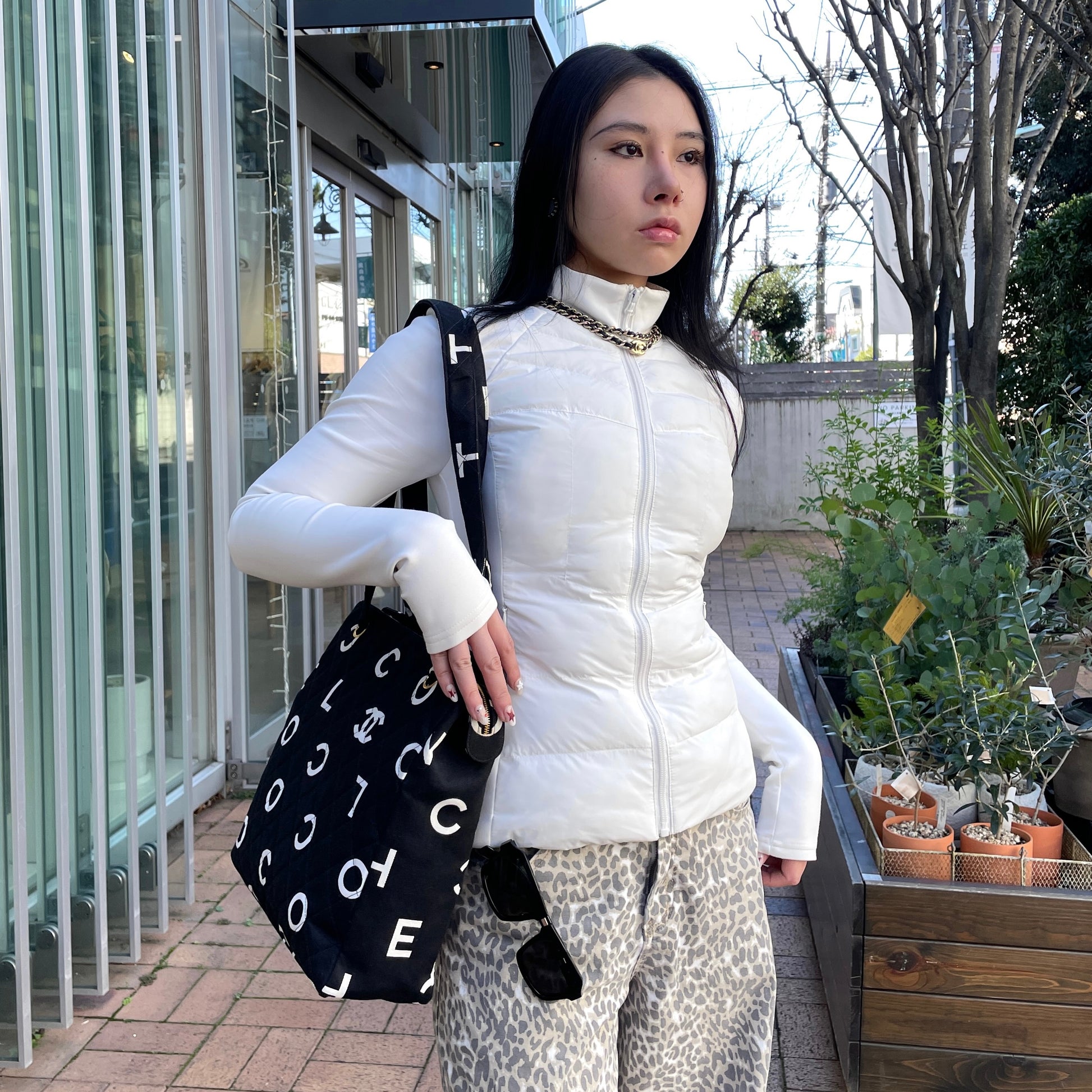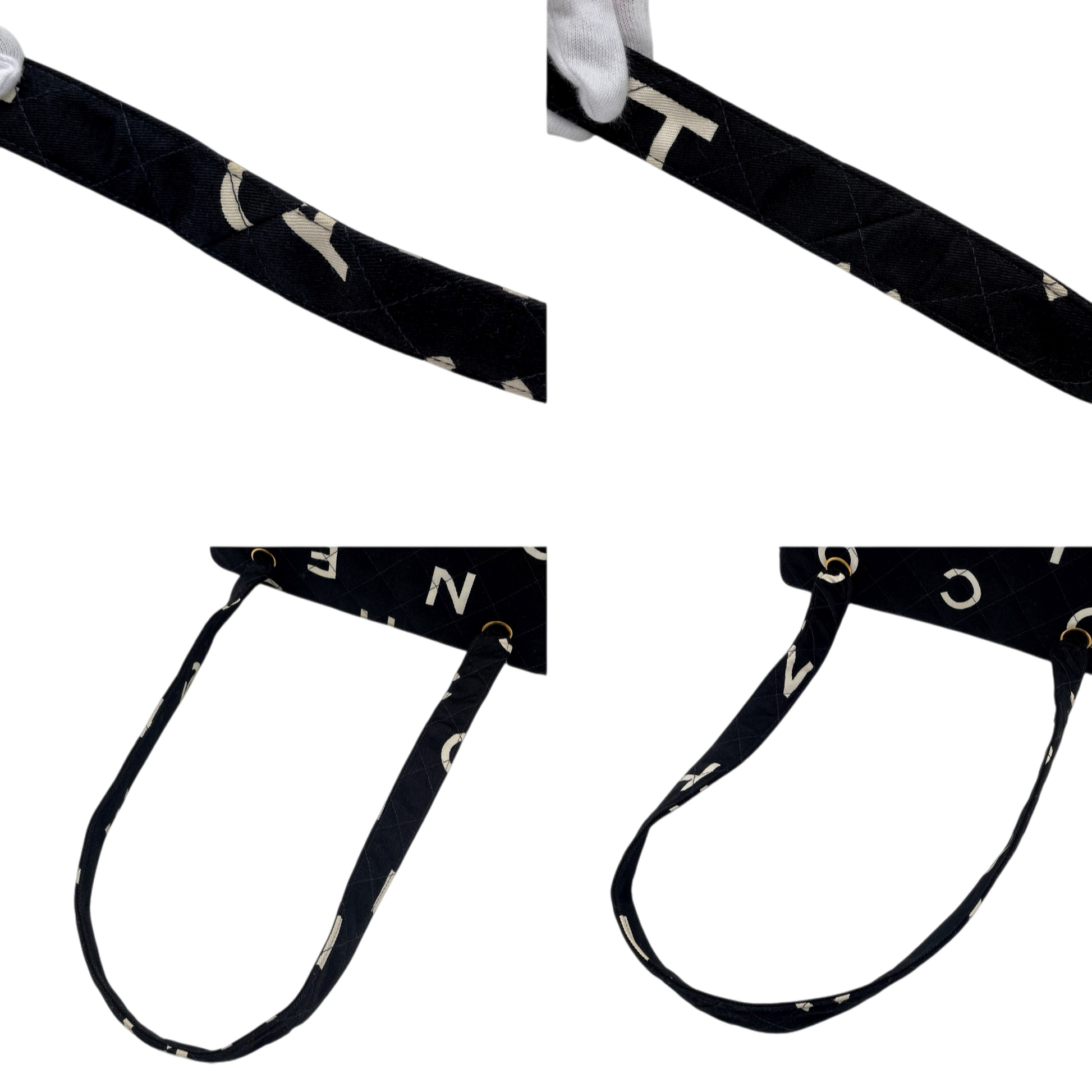 RARE☆☆☆☆CHANEL 1997 Matelassé Canvas Logos Graffiti Tote Shoulder bag Black & White