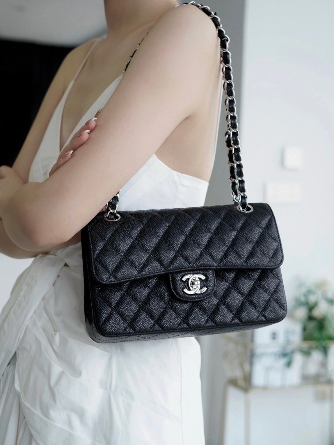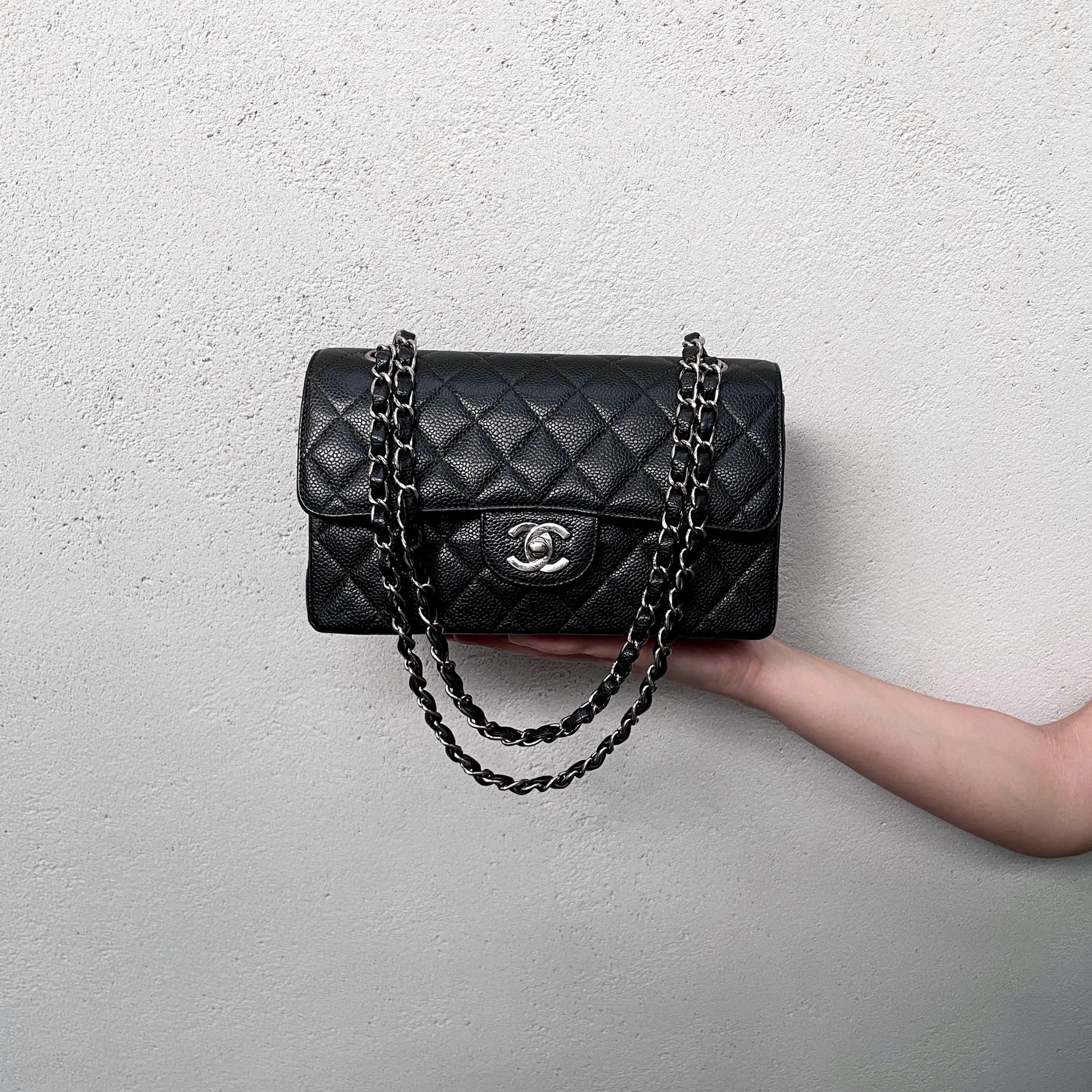 RARE☆☆☆ CHANEL Matelassé Caviar Skin Leather Classic Flap W-Chain Shoulder Bag PM #