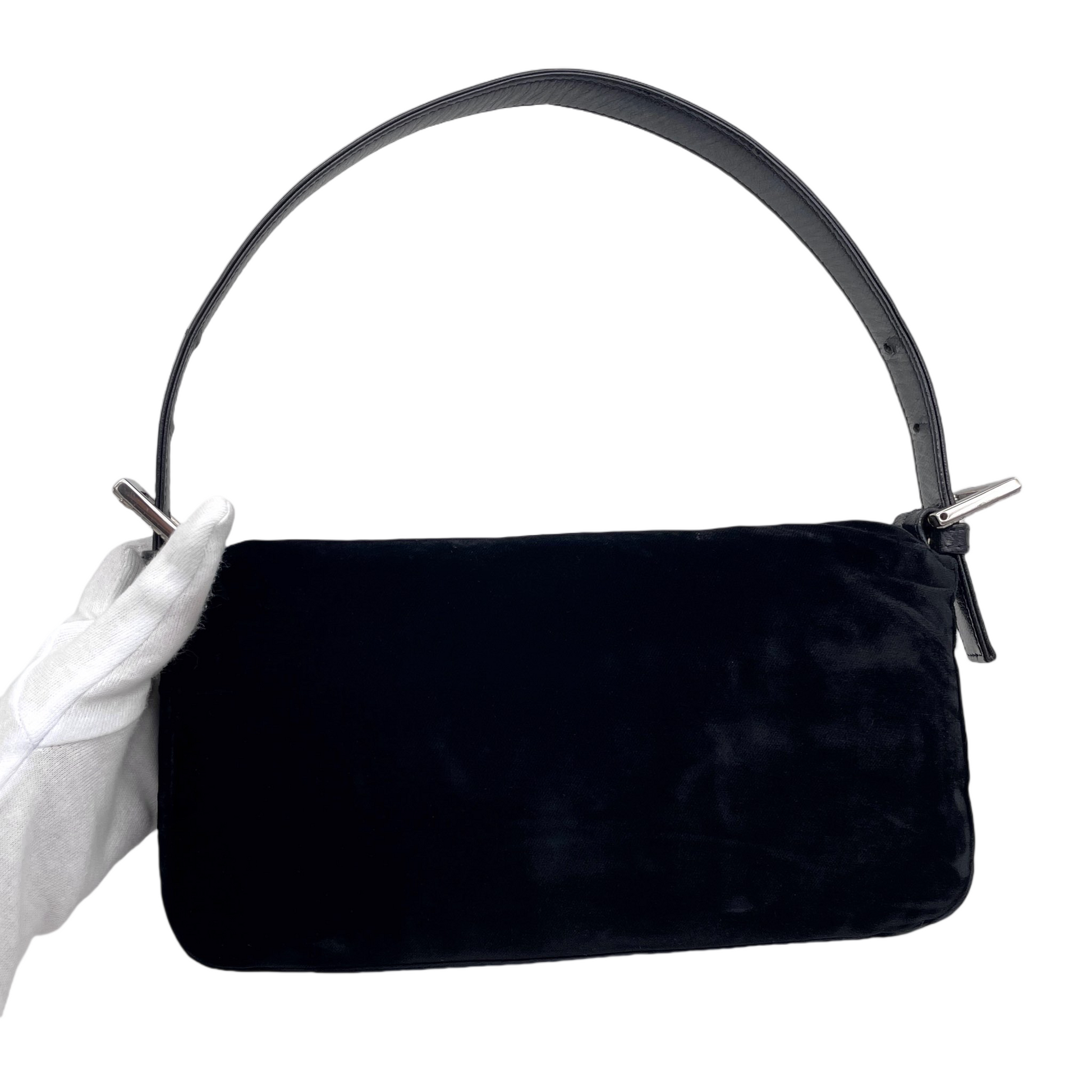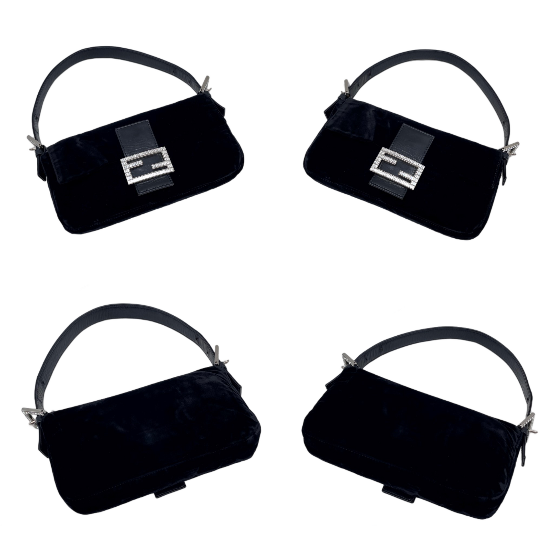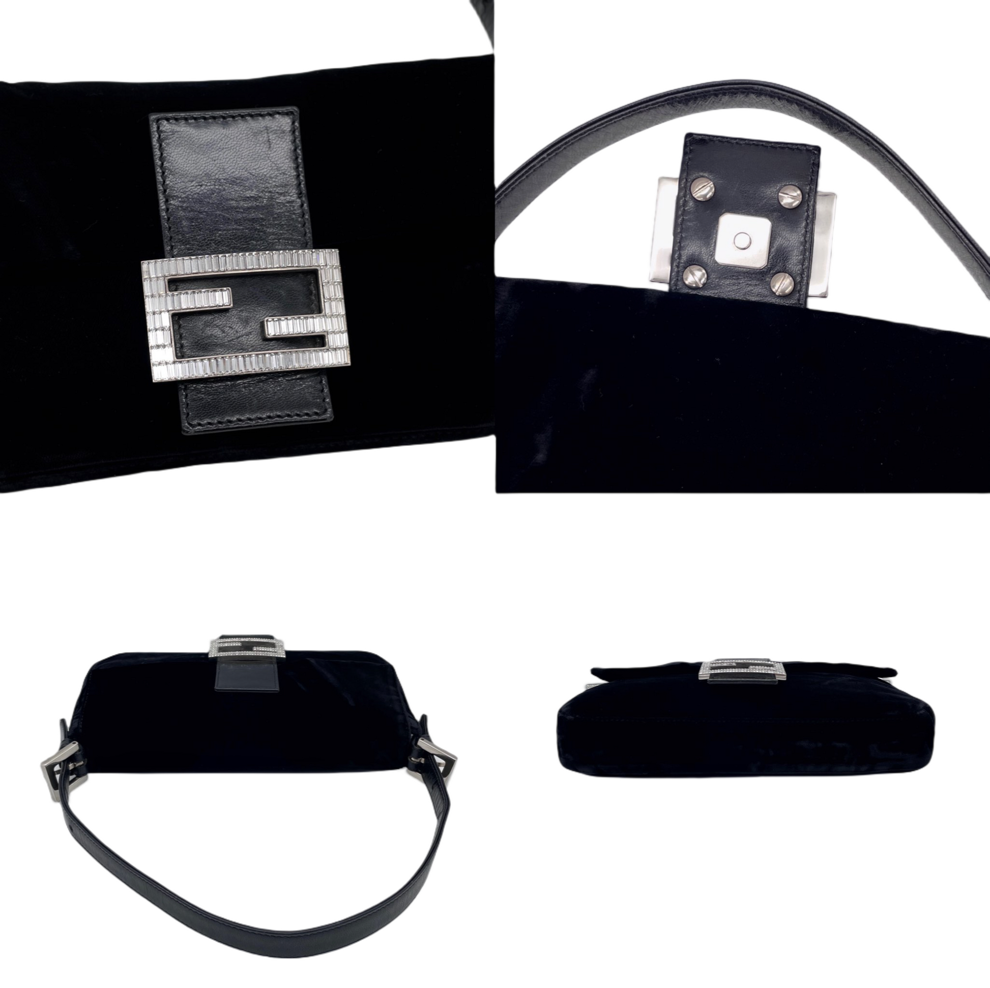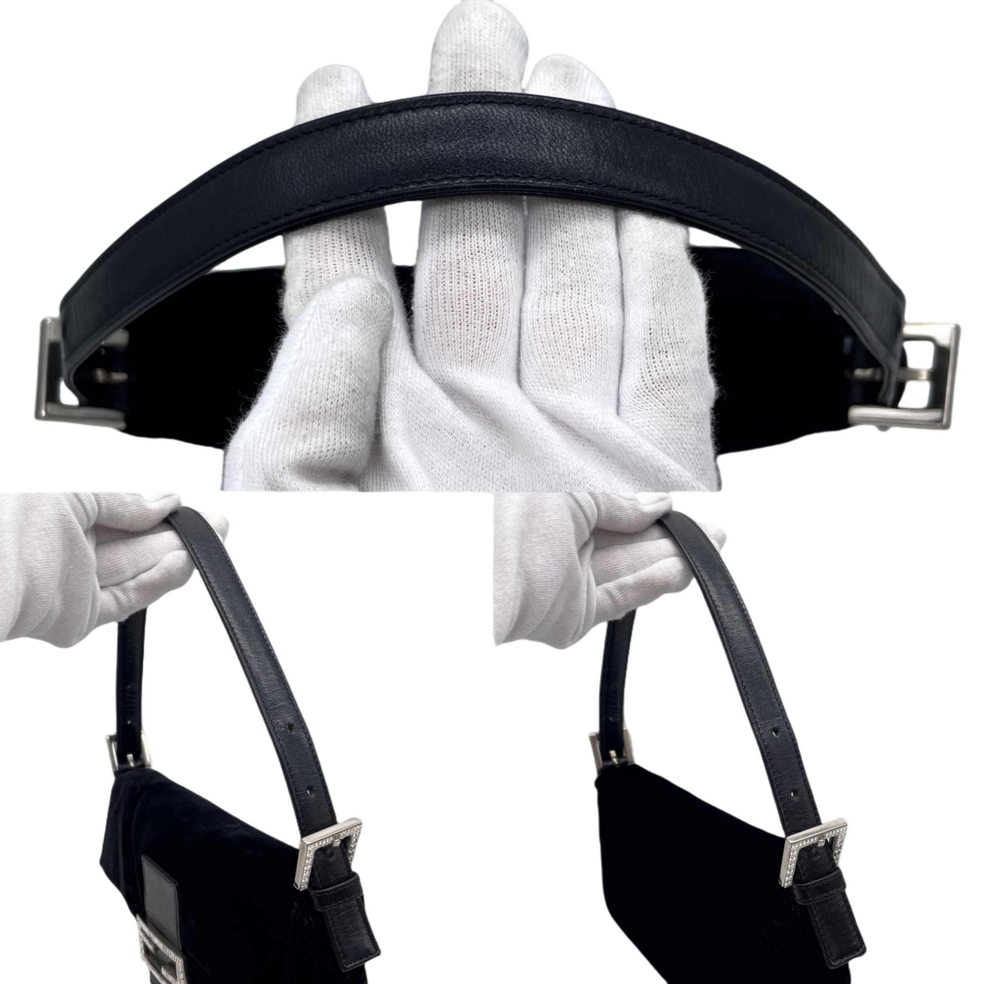 RARE☆☆☆☆FENDI Velvet Rhinestone Logo Hard Wear Mamma Baguette PM Shoulder Bag Black & Silver