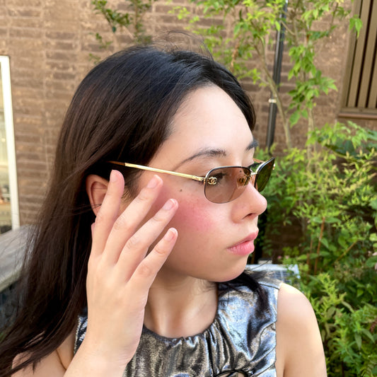 CHANEL 5210-Q Matelassé CC LOGO Chain Link Square Sunglasses Brown & Gold