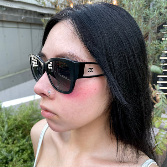 CHANEL 5171-A Bow Detail Square Sunglasses Black & Gold