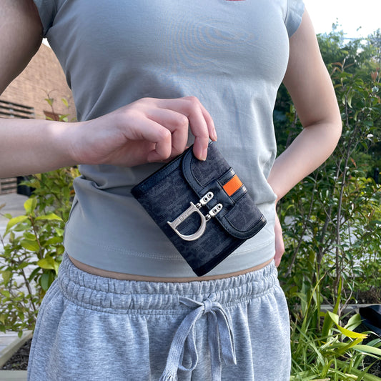 RARE☆☆☆CHRISTIAN DIOR Flight Line Trotter D LOGO Short Wallet Navy