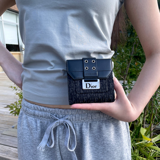 RARE☆☆☆CHRISTIAN DIOR Trotter Canvas Street Chic Short Wallet Black & Silver