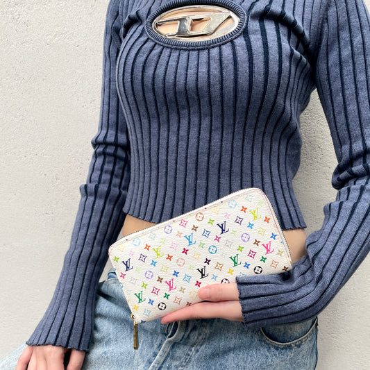 RARE☆☆☆LOUIS VUITTON Monogram Multicolor/White Zipper Wallet/M60049
