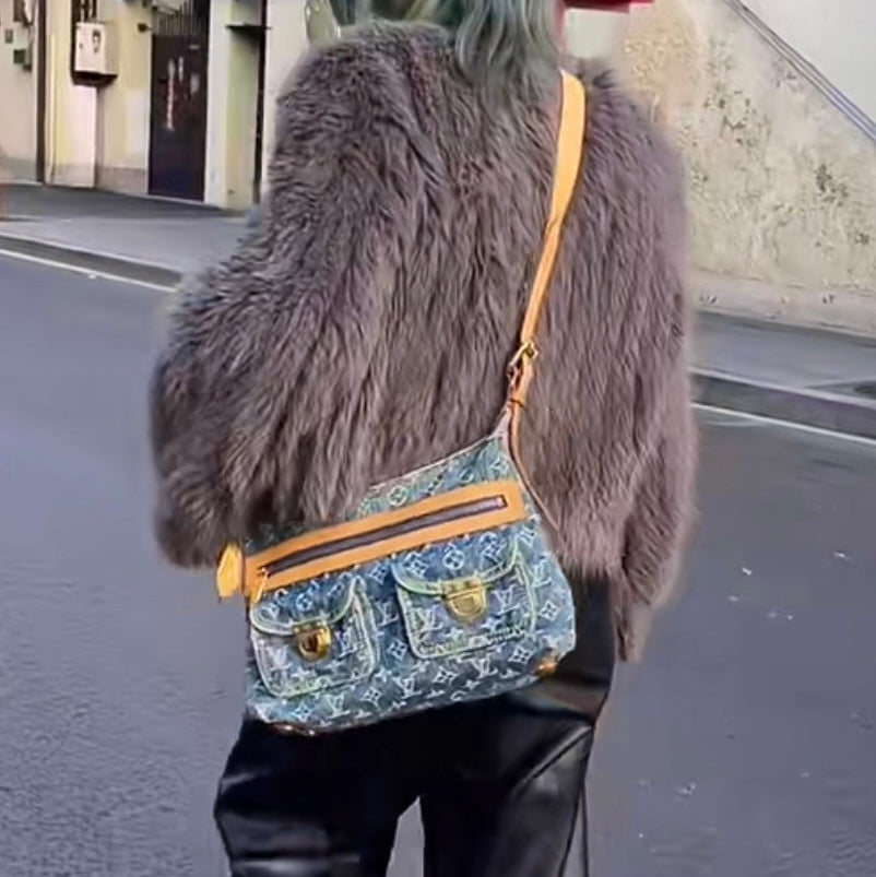RARE☆☆☆☆LOUIS VUITTON 2005 Monogram Denim Baggy PM M95049 Shoulder Bag Blue & Brown