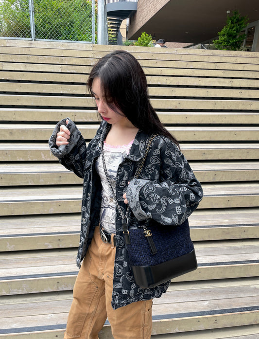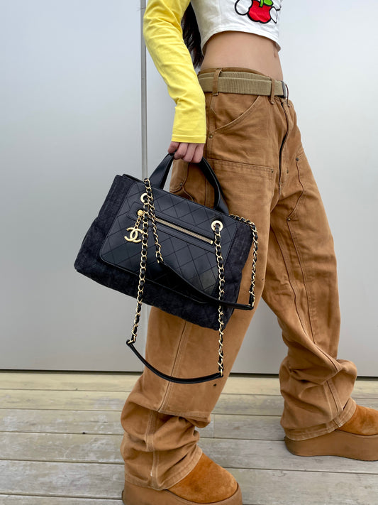 RARE☆☆☆CHRISTIAN DIOR Trotter Canvas Mini Boston Handbag 20cm Black & Gray