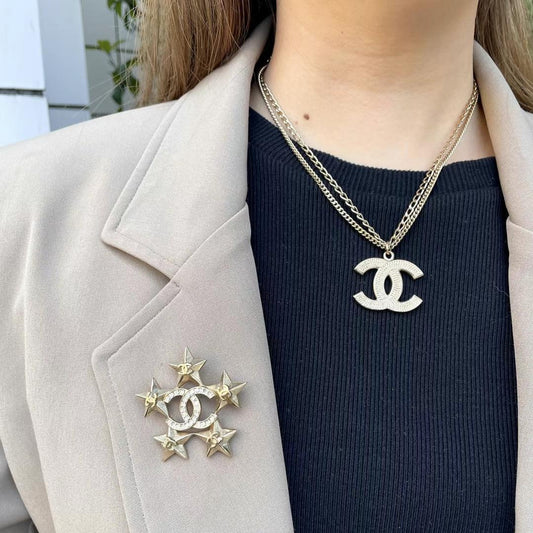 RARE☆☆ CHANEL Star Coco Mark Rhinestone Brooch A17C