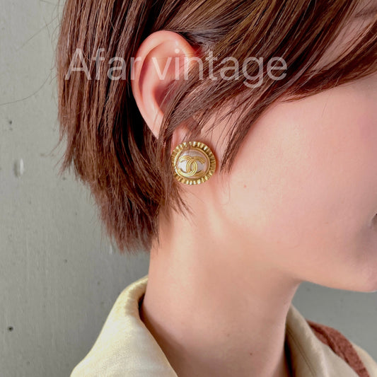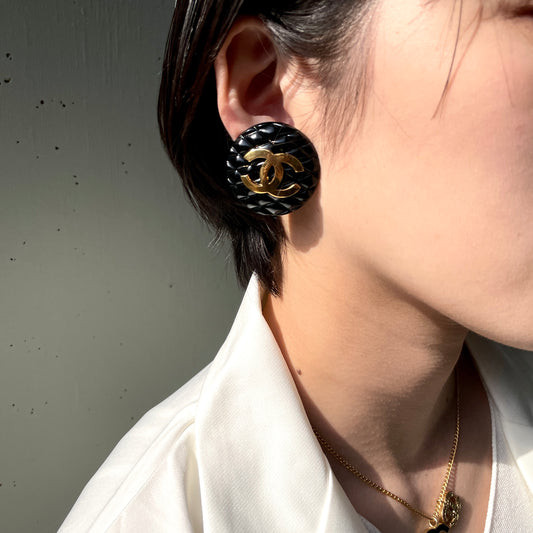 RARE☆☆☆CHANEL Jumbo Coco Mark Matelasse Earrings Black Gold