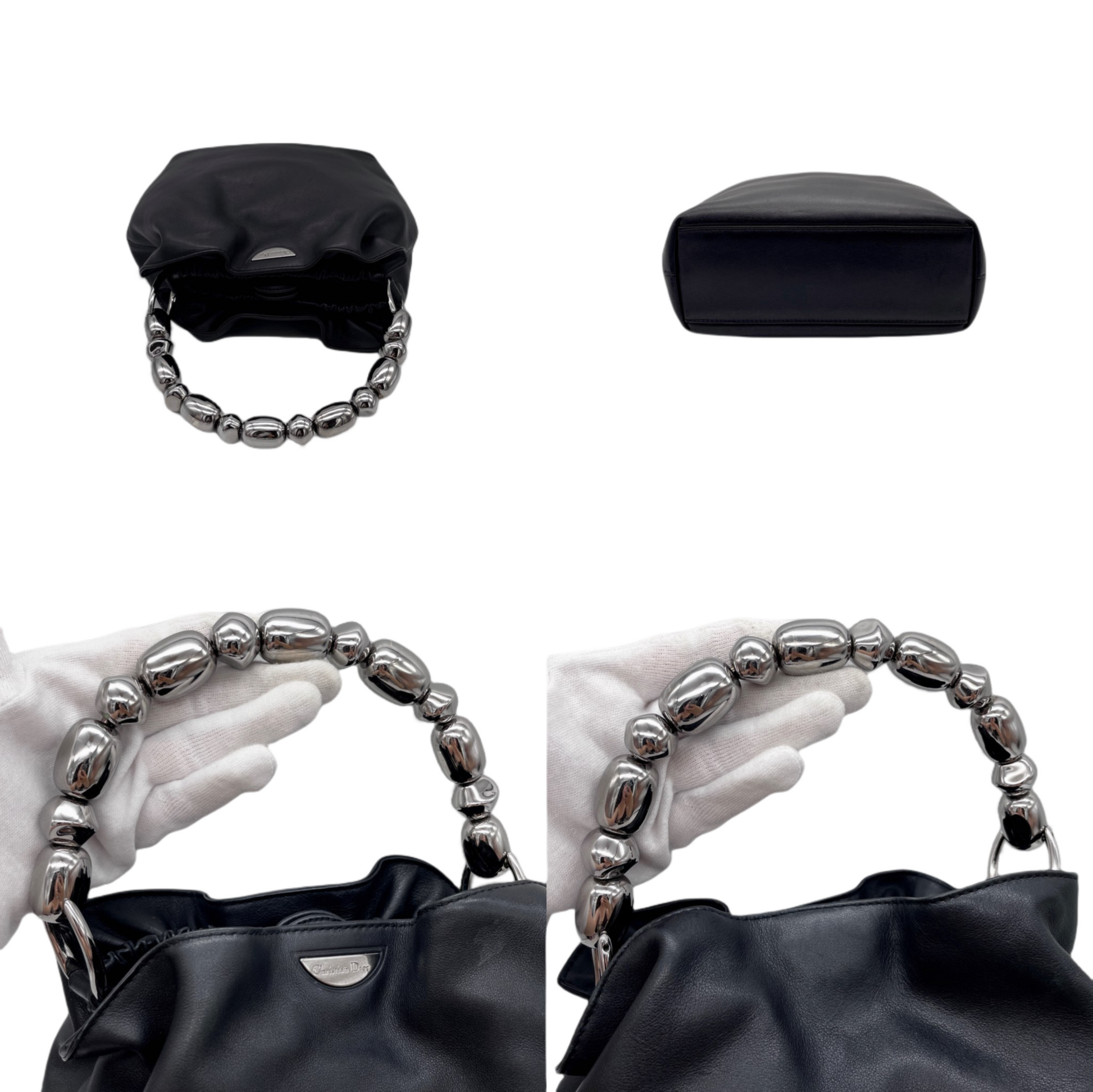 CHRISTIAN DIOR 2000 Preloved Malice Pearl Calf Skin Leather Pearls Handle Hand Bag Black & Silver