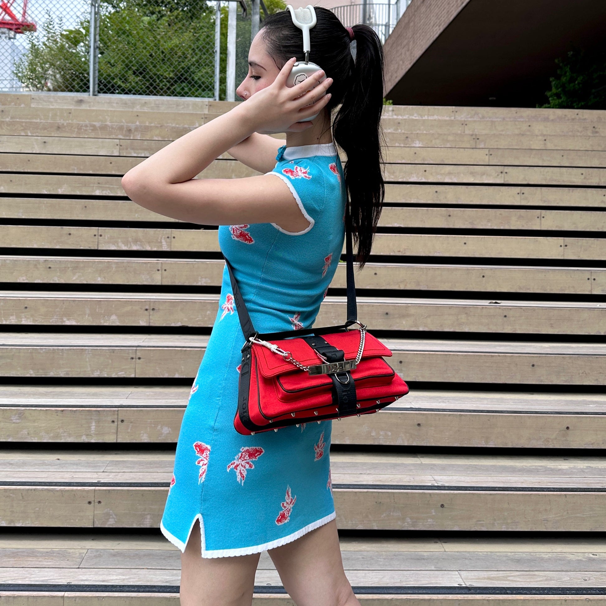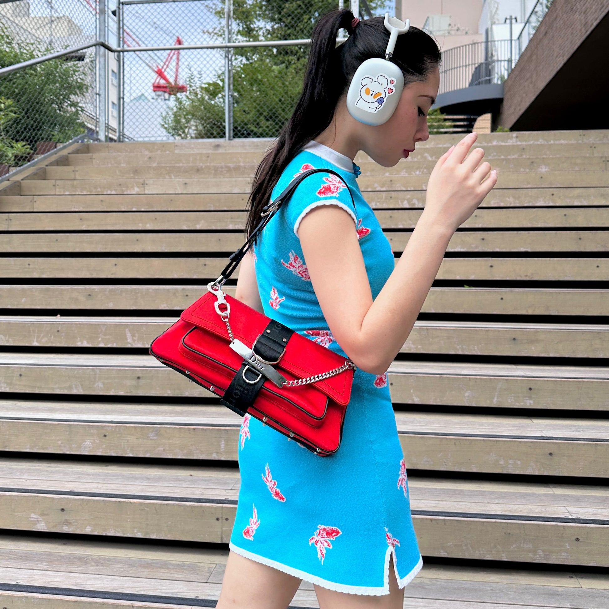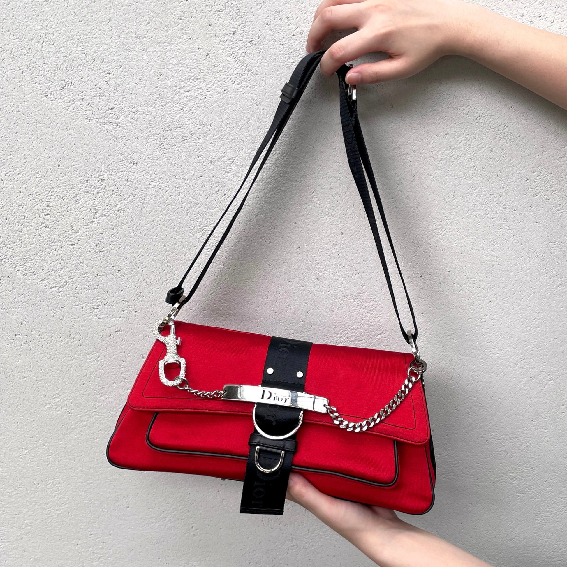 RARE☆☆☆☆CHRISTIAN DIOR Hardcore Rhinestone Chain Handle 2-Way Shoulder Bag Red & Black