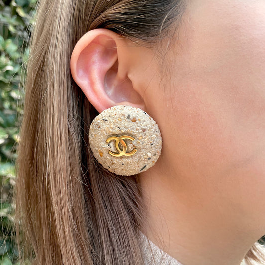 CHANEL Coco Mark Stone Earrings / Beige / Gold 94P