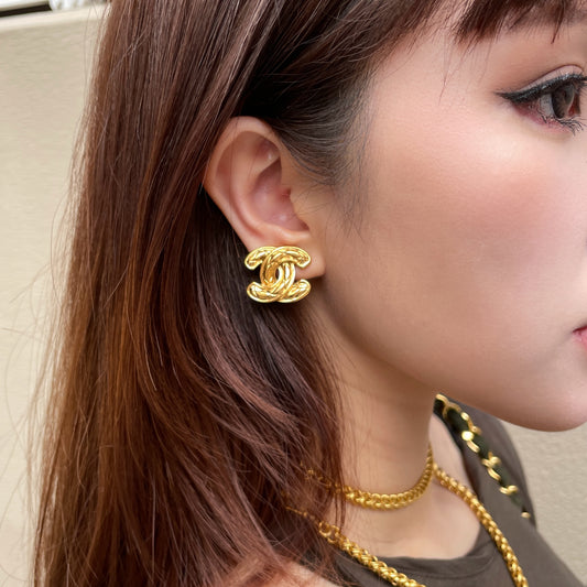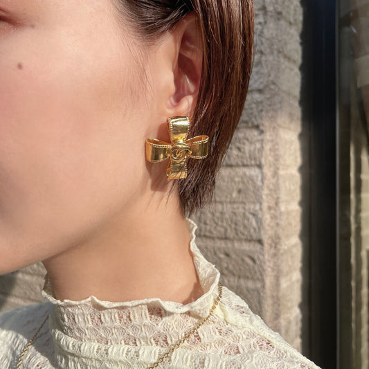 RARE☆☆ CHANEL Ribbon Coco Mark Earrings 97A