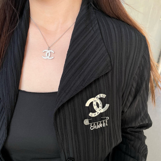 RARE☆☆☆AUTH Pre-owned CHANEL Cocomark CHANEL logo rhinestone hat brooch