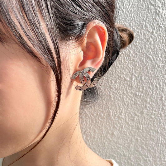 CHANEL Rhinestone Coco Mark Turnlock Earrings 96A