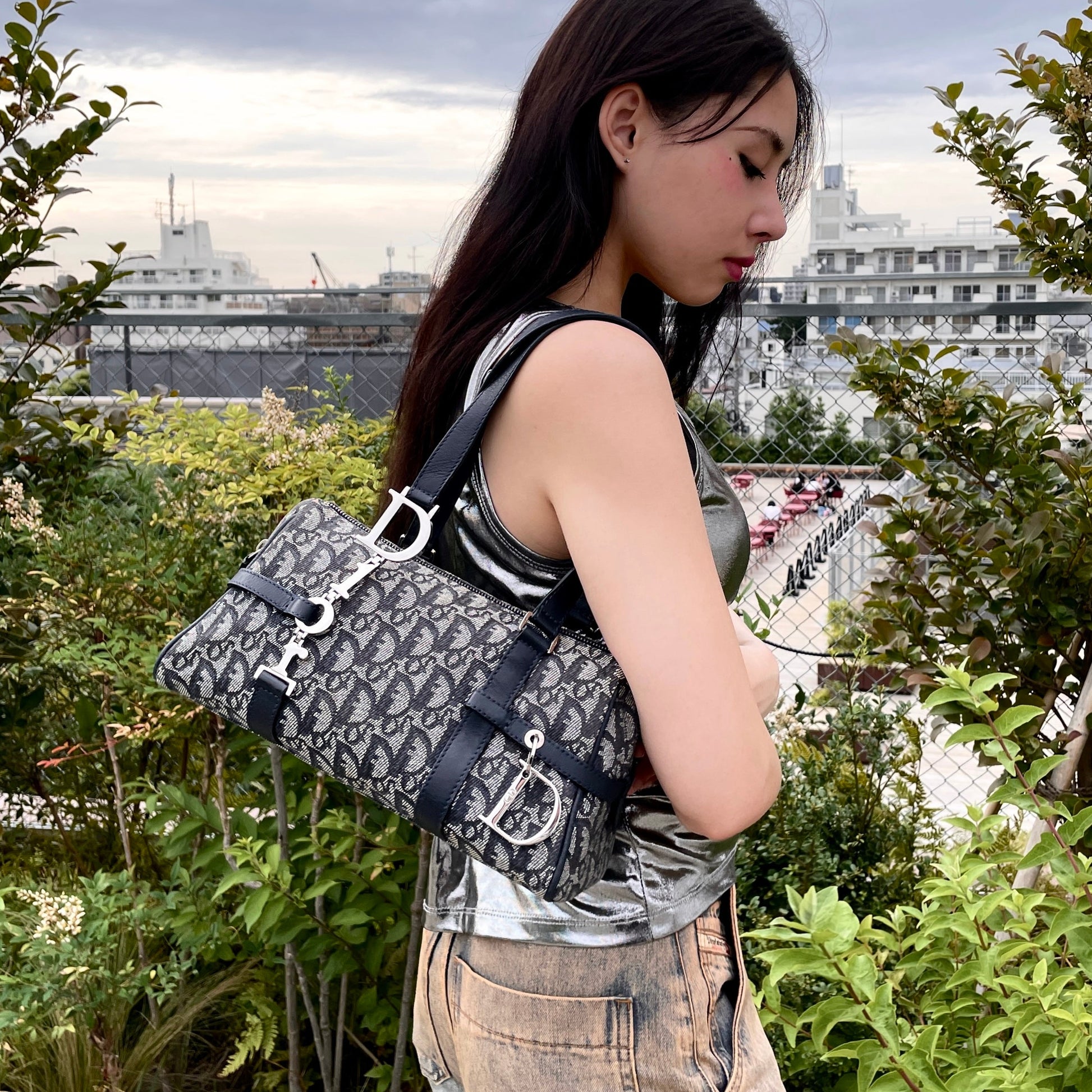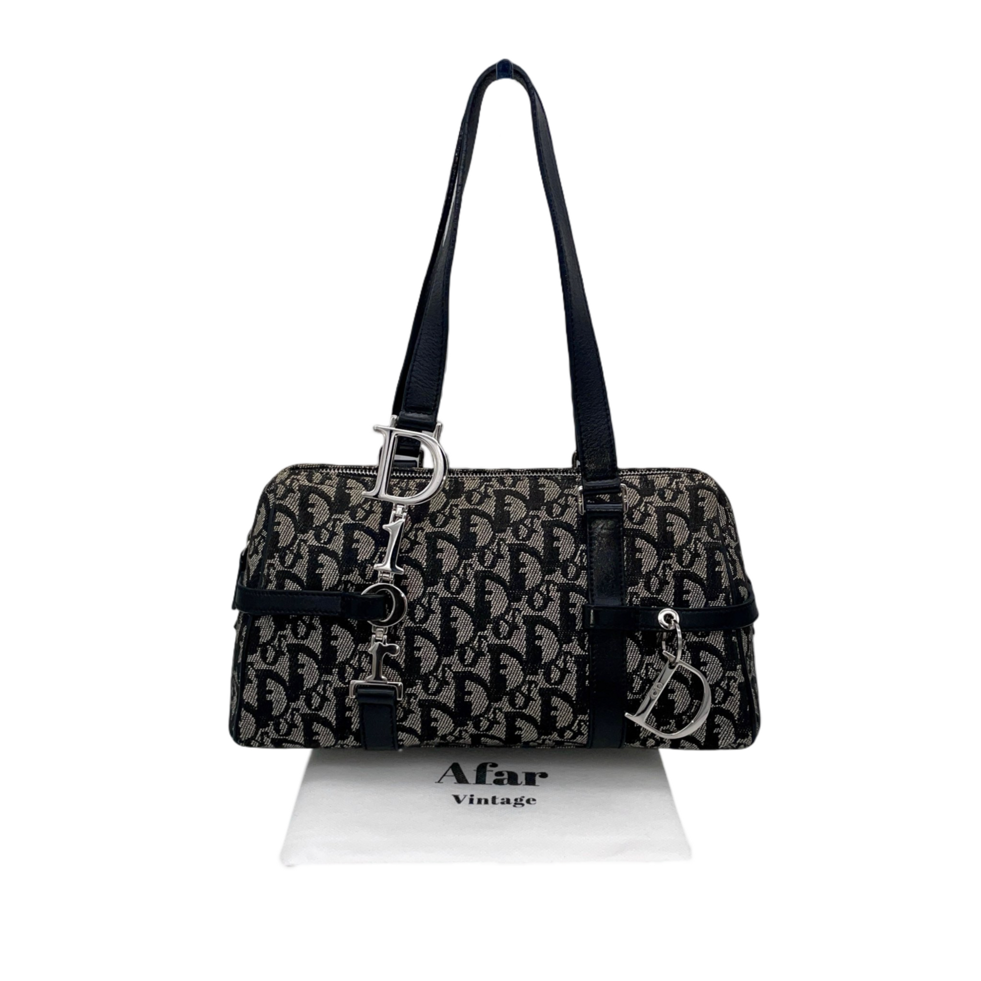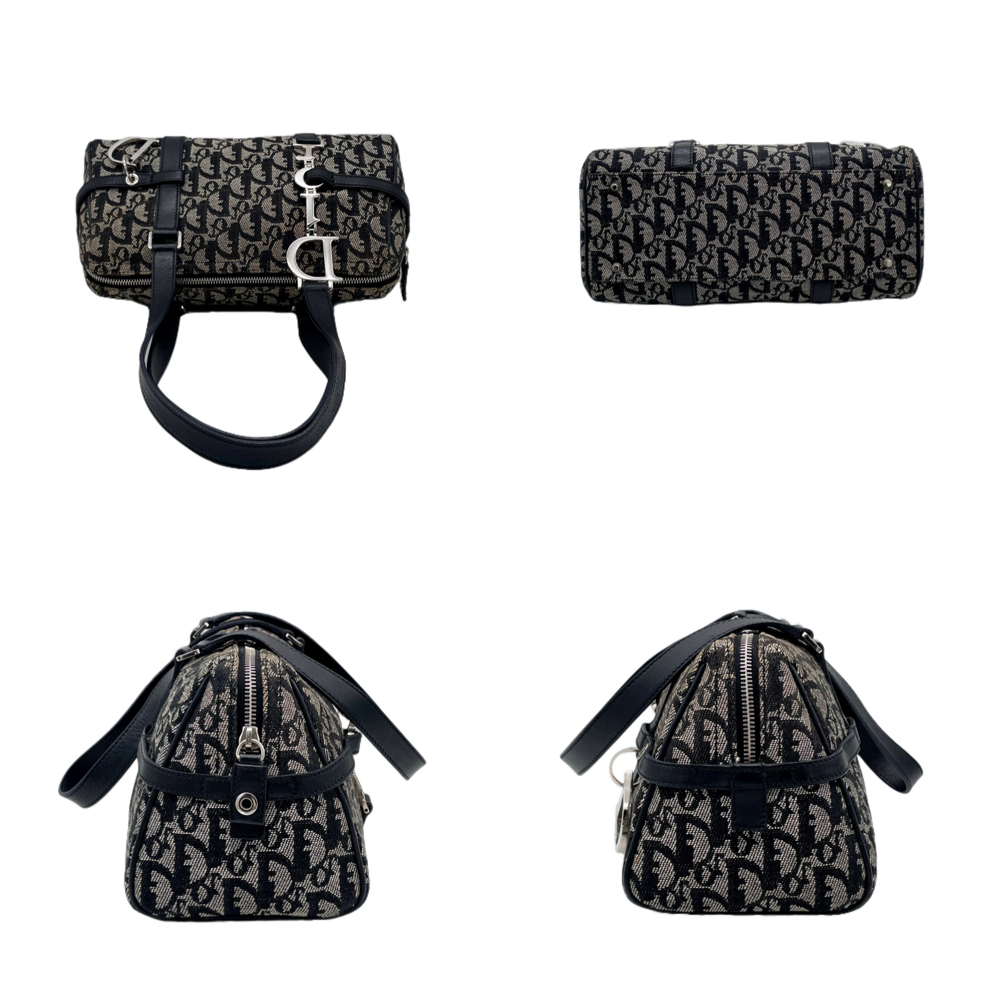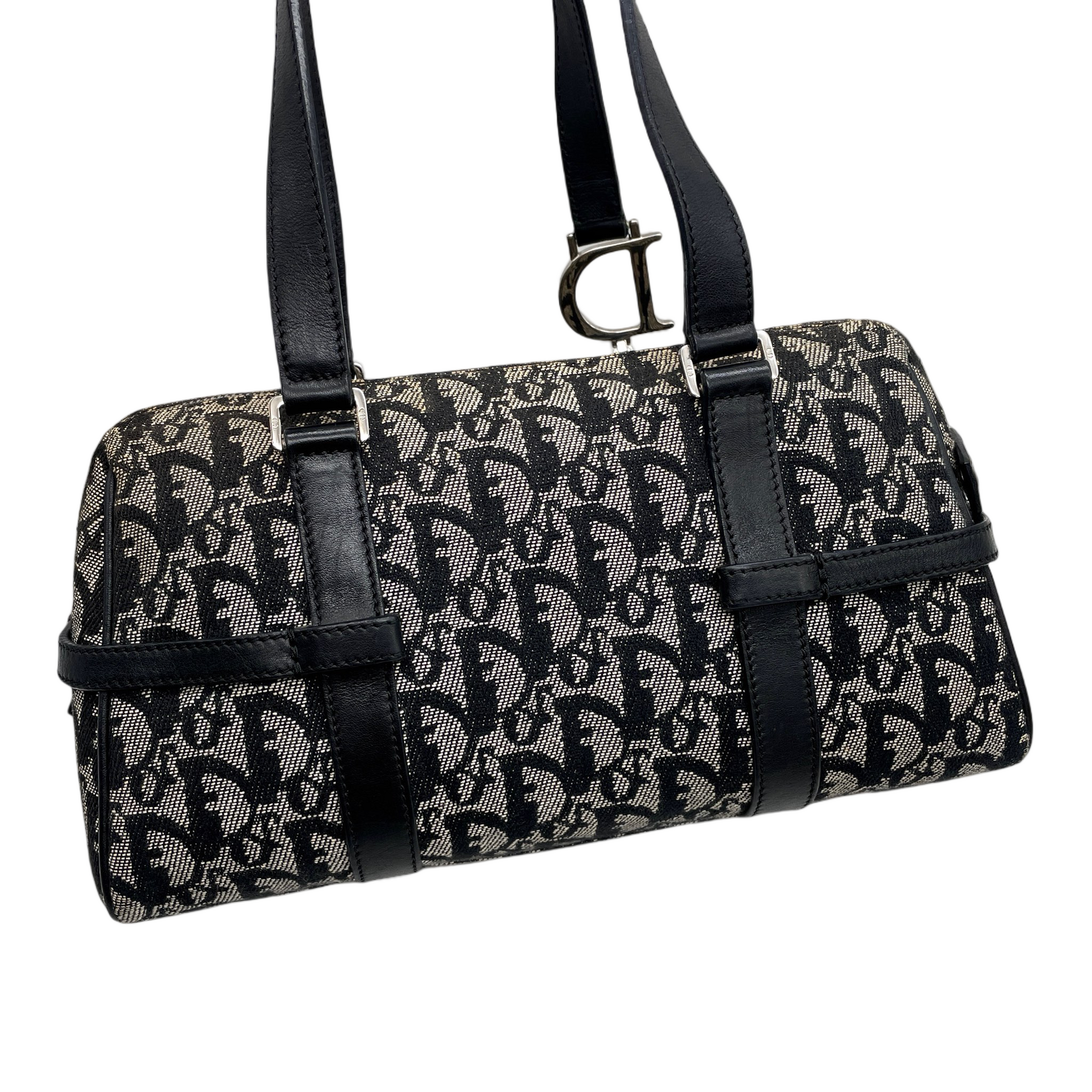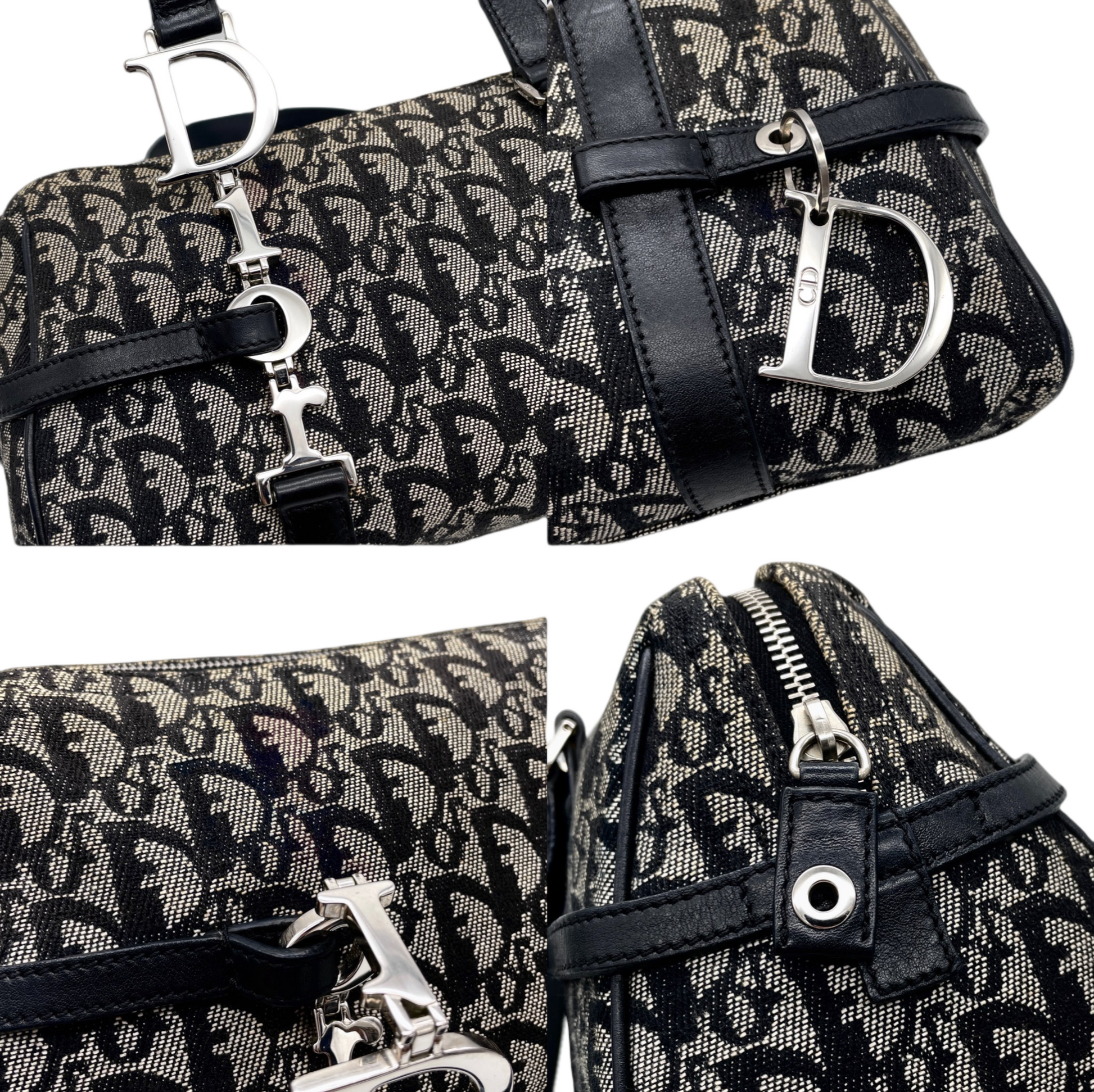 RARE☆☆☆CHRISTIAN DIOR Trotter Dior Chain Shoulder D Pendant Bowling Bag Navy & Silver
