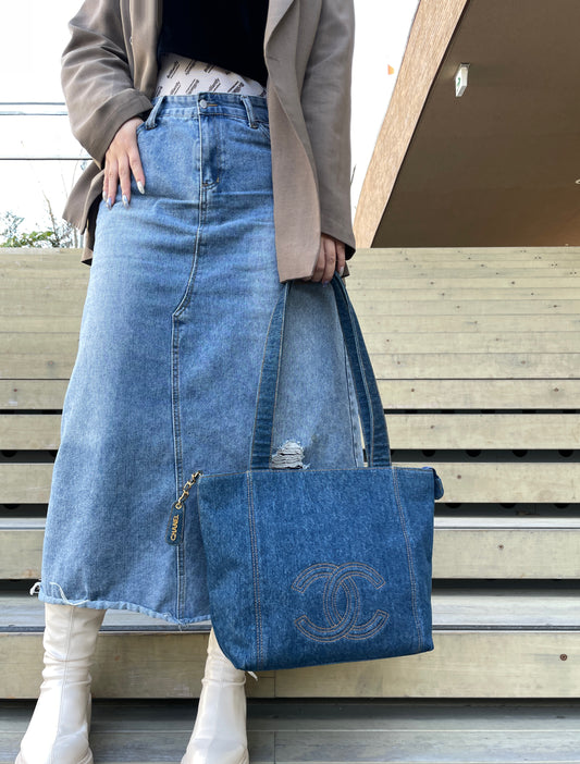 RARE☆☆☆☆ CHANEL Jumbo Coco Mark Denim Tote Bag Shoulder Bag