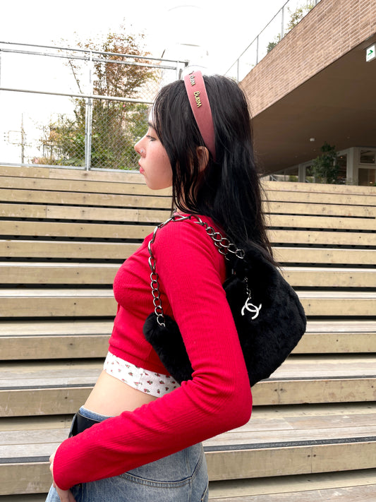 RARE☆☆☆CHANEL Coco Mark Pendant Rabbit Fur Chain Shoulder Bag