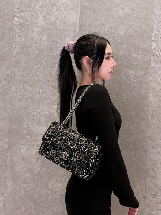 RARE☆☆☆☆☆☆CHANEL 09/10 Shanghai Autumn Collection Rhinestone Coco Mark Classic Flap Double Chain Shoulder Bag No. 13