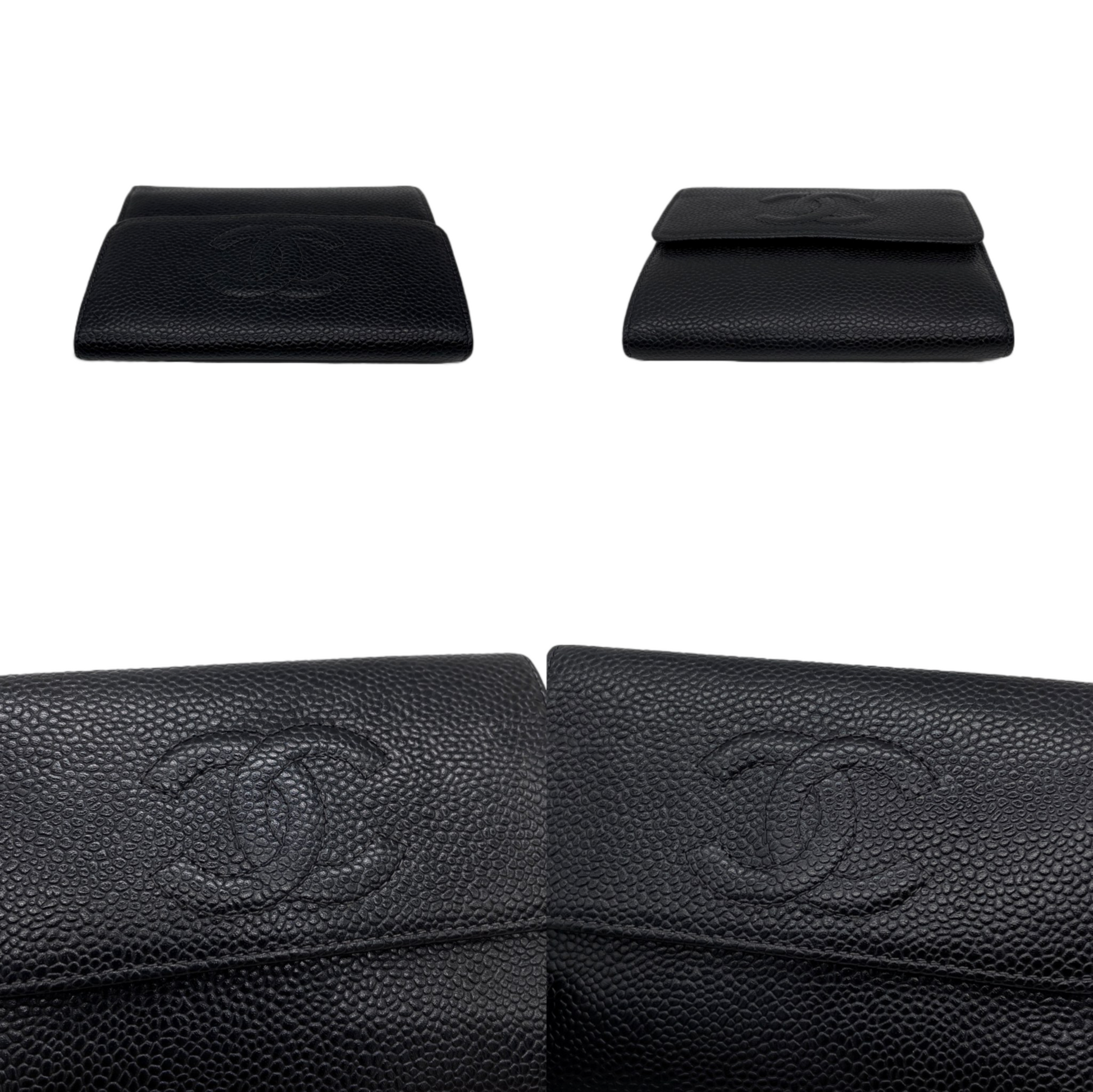 CHANEL CC LOGO Caviar Skin Leather Wallet Black