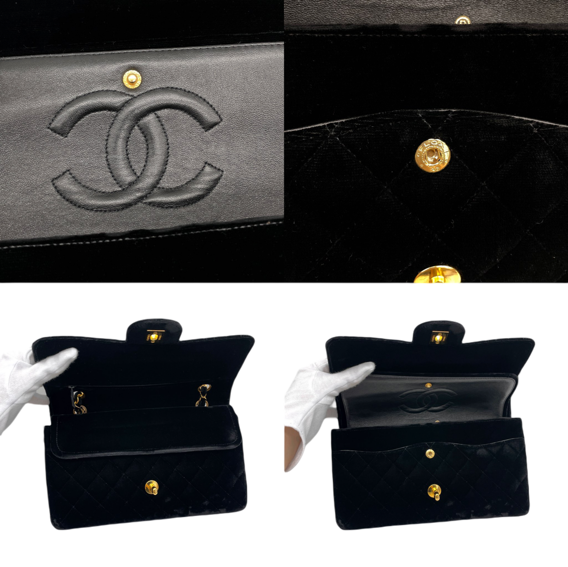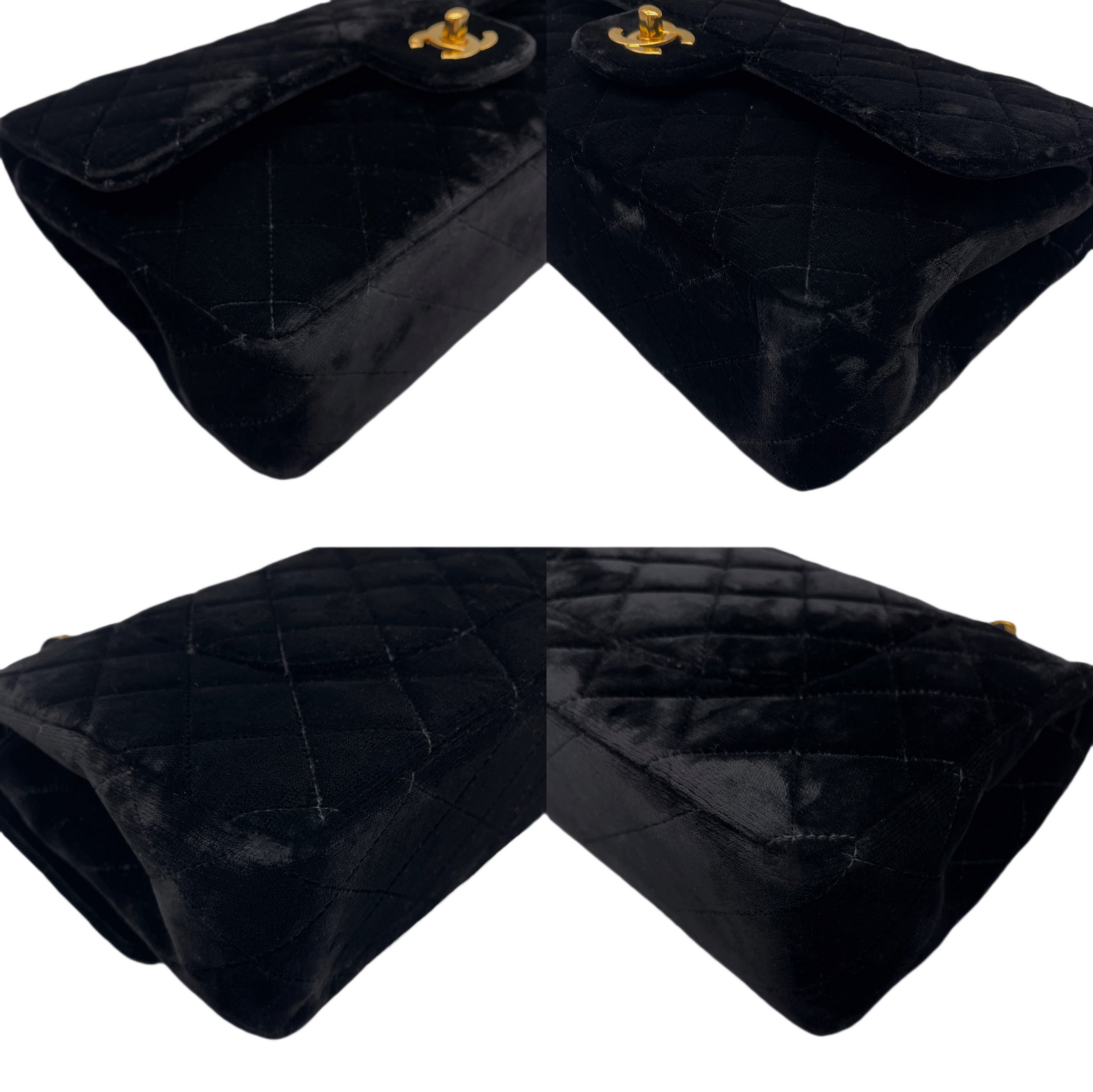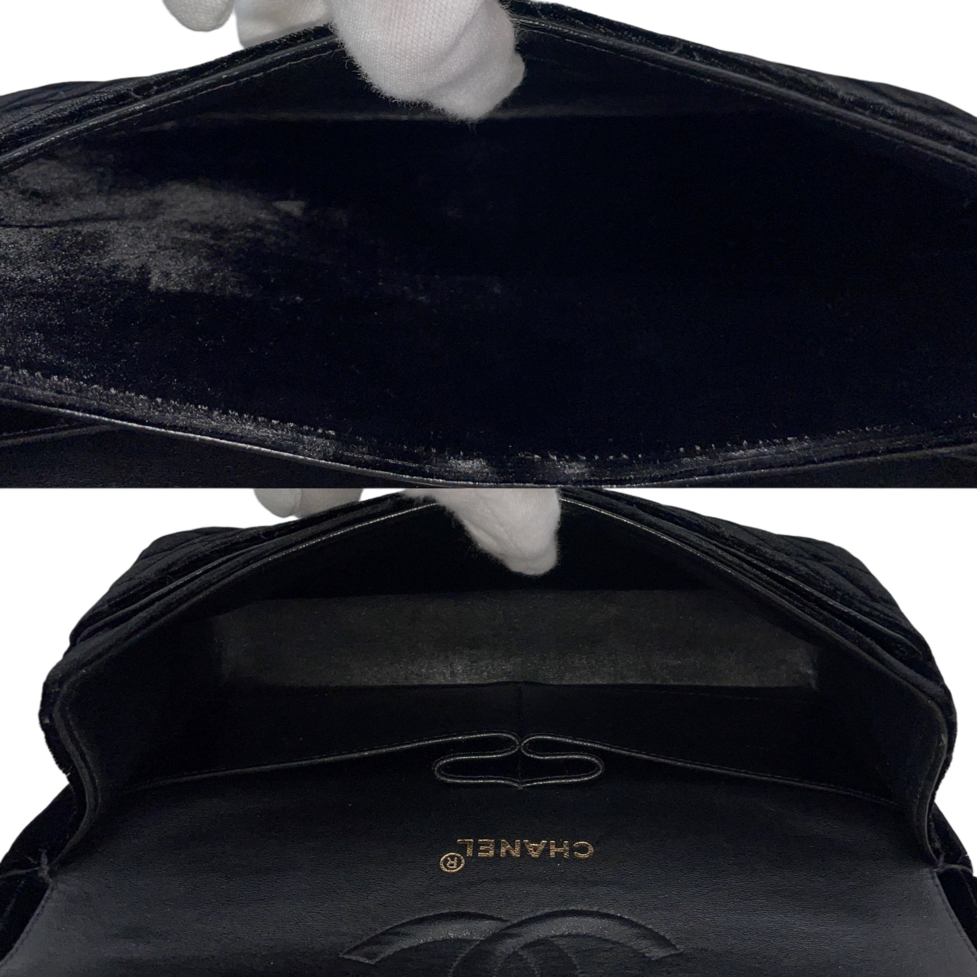 RARE☆☆☆☆☆CHANEL 1995 Matelassé Velvet Classic Double Chain Shoulder Double Flap Bag 25cm Black & Gold #