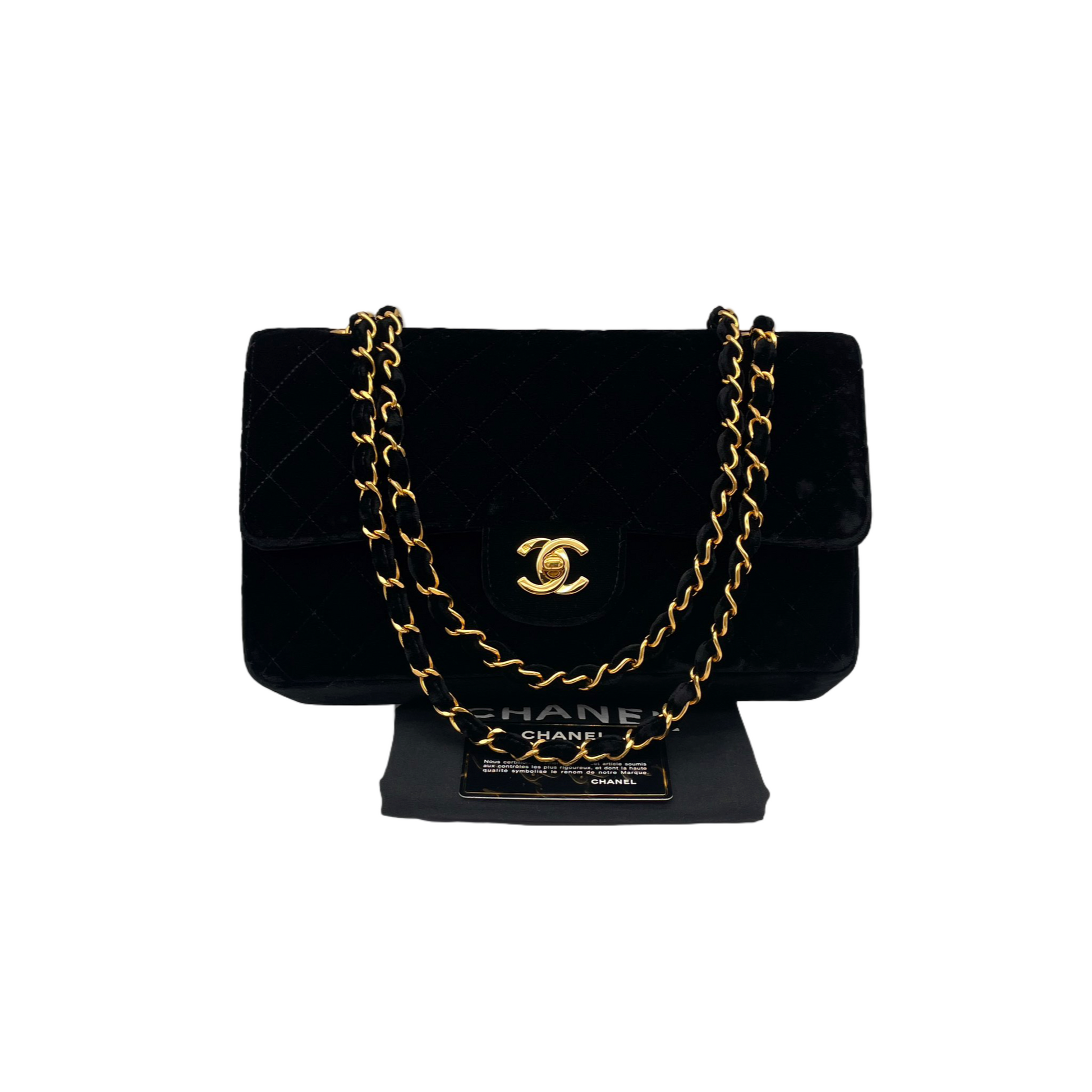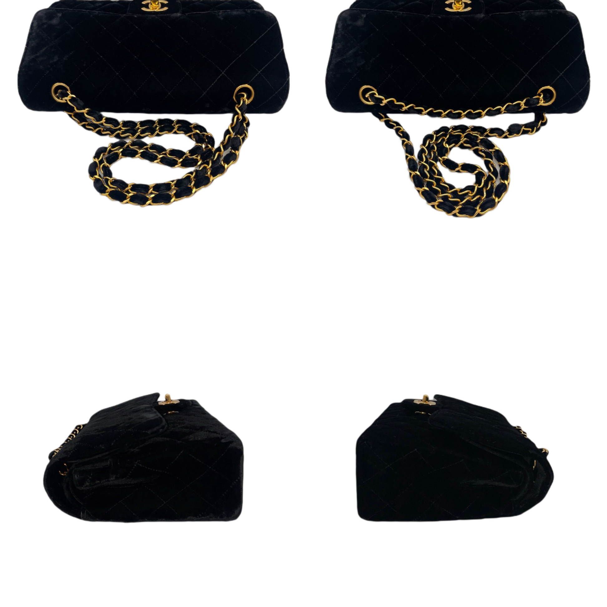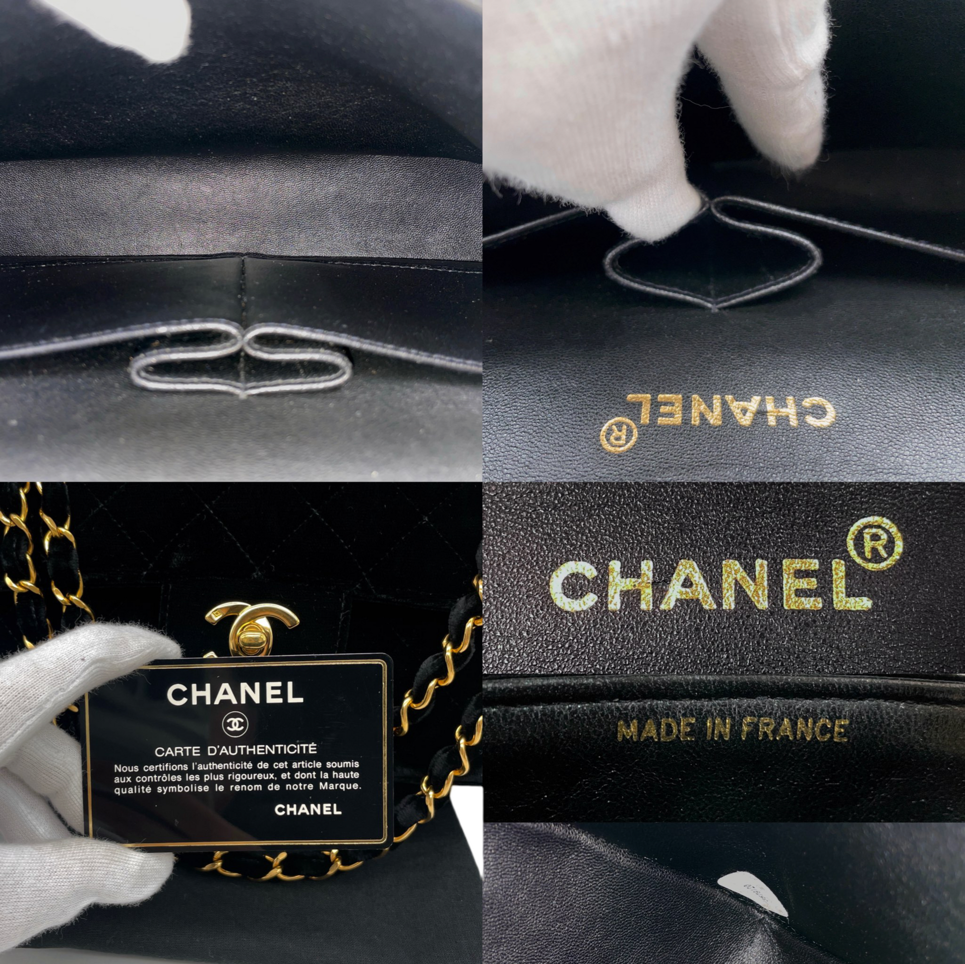 RARE☆☆☆☆☆CHANEL 1995 Matelassé Velvet Classic Double Chain Shoulder Double Flap Bag 25cm Black & Gold #