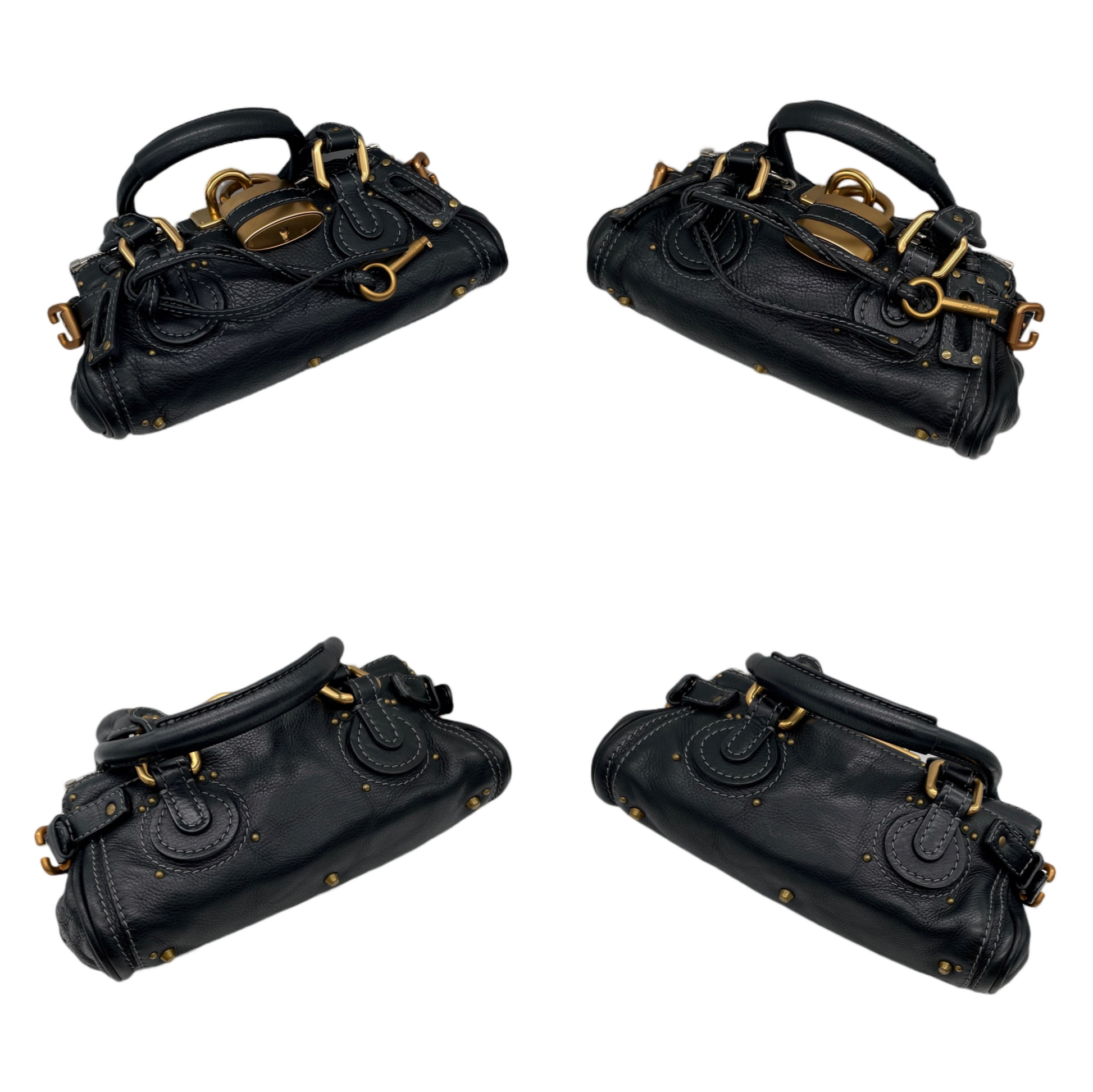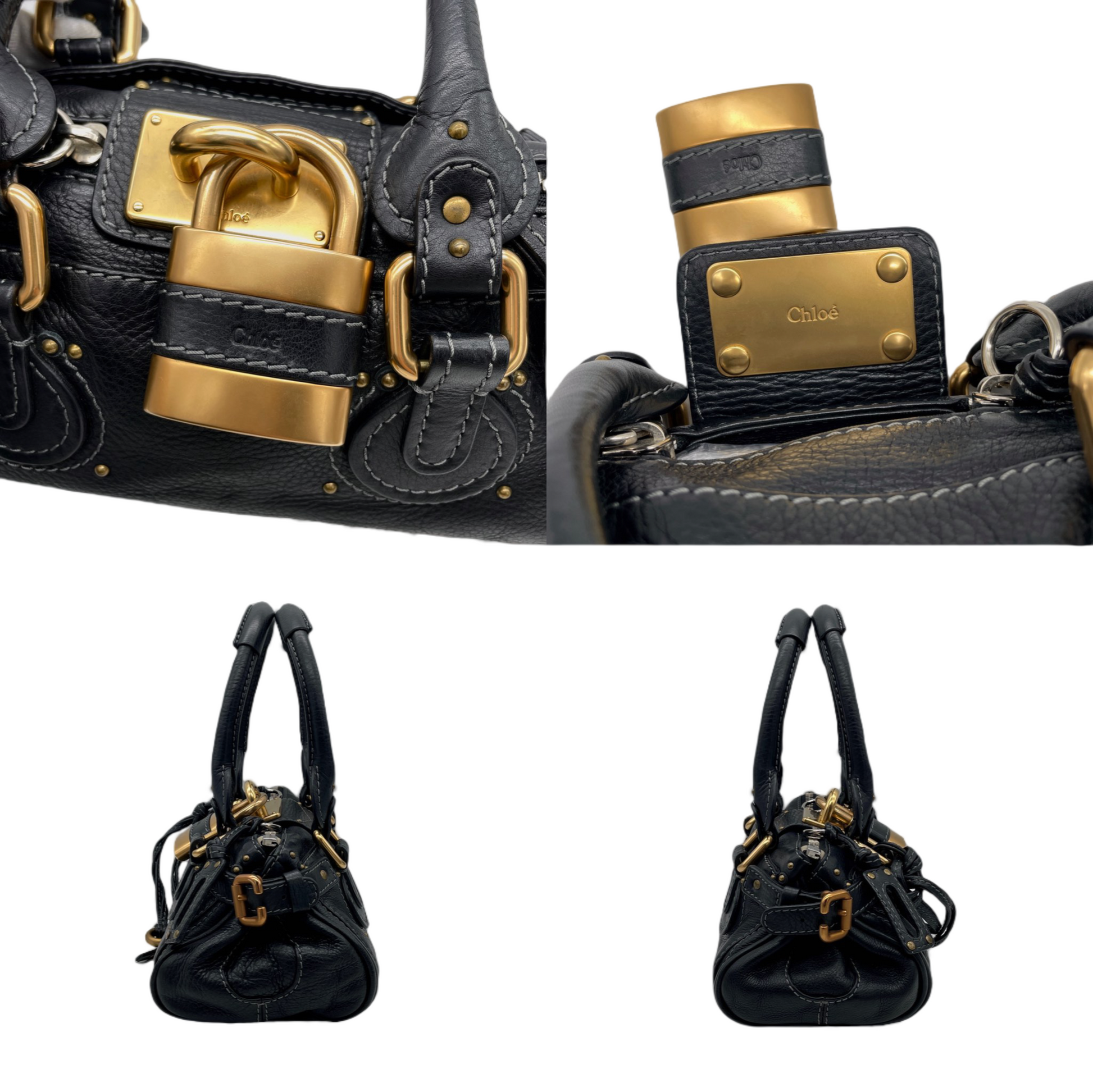 RARE☆☆☆☆Chloé Paddington Padlock Hand Bag Leather Black & Gold