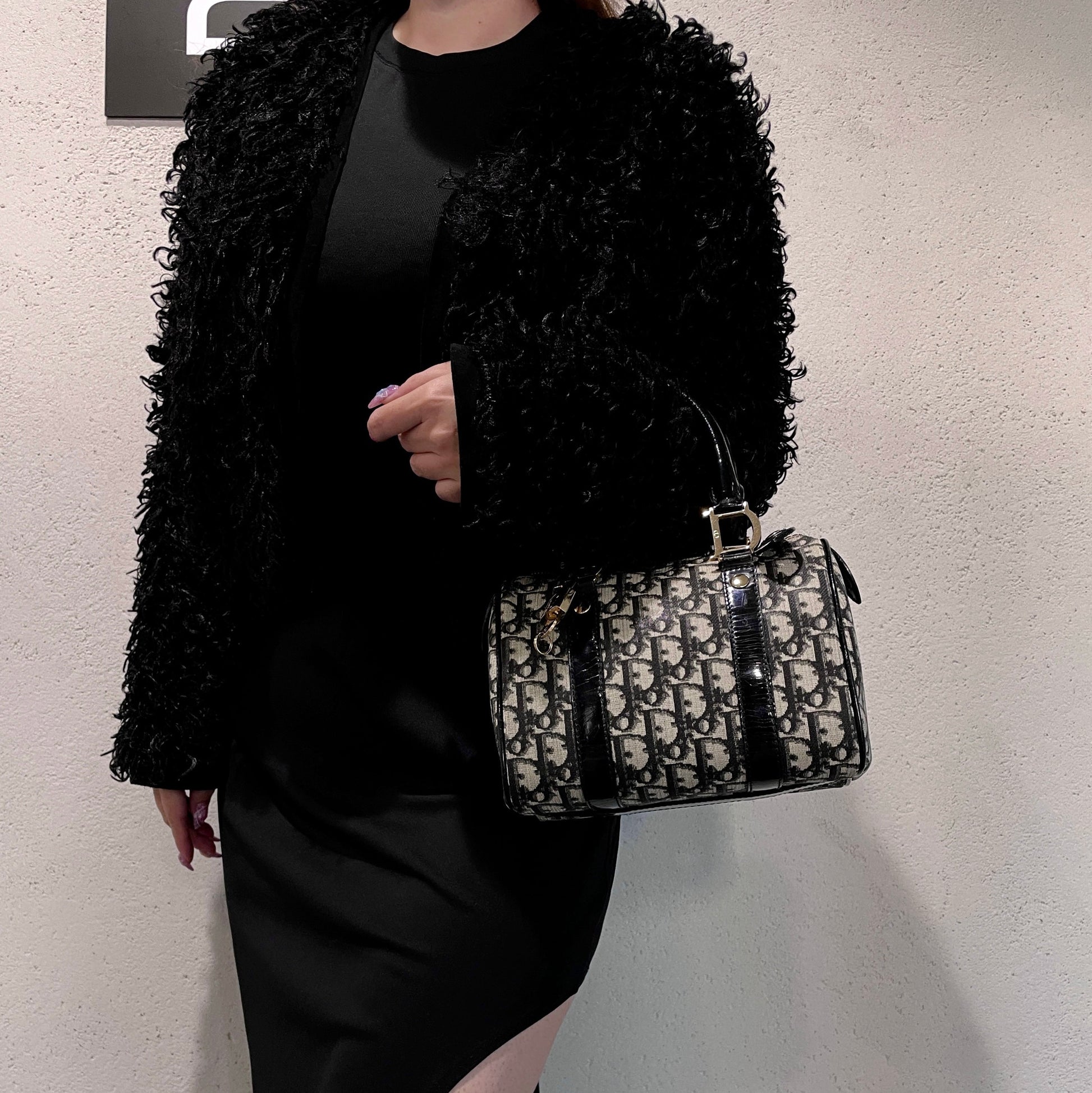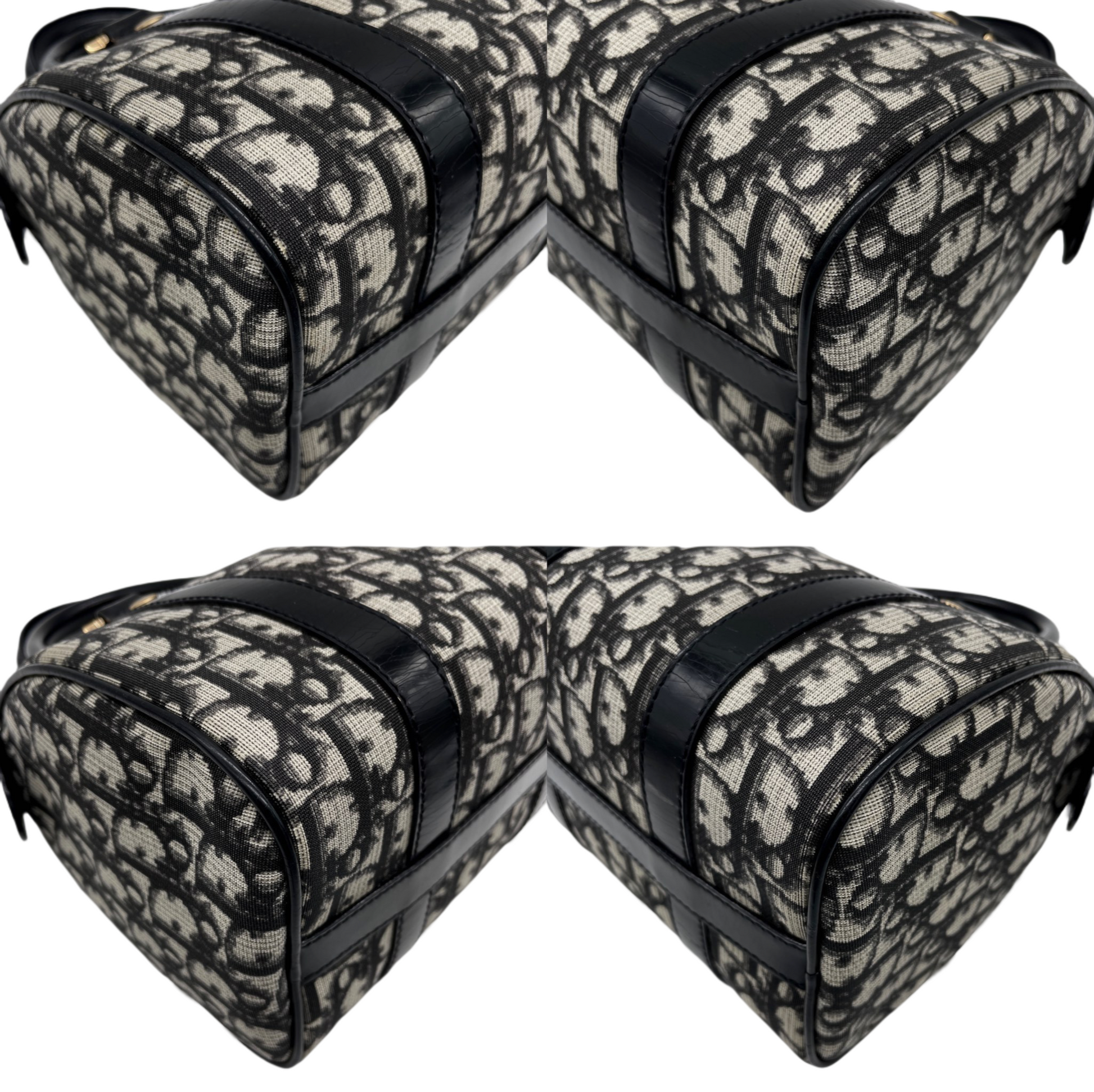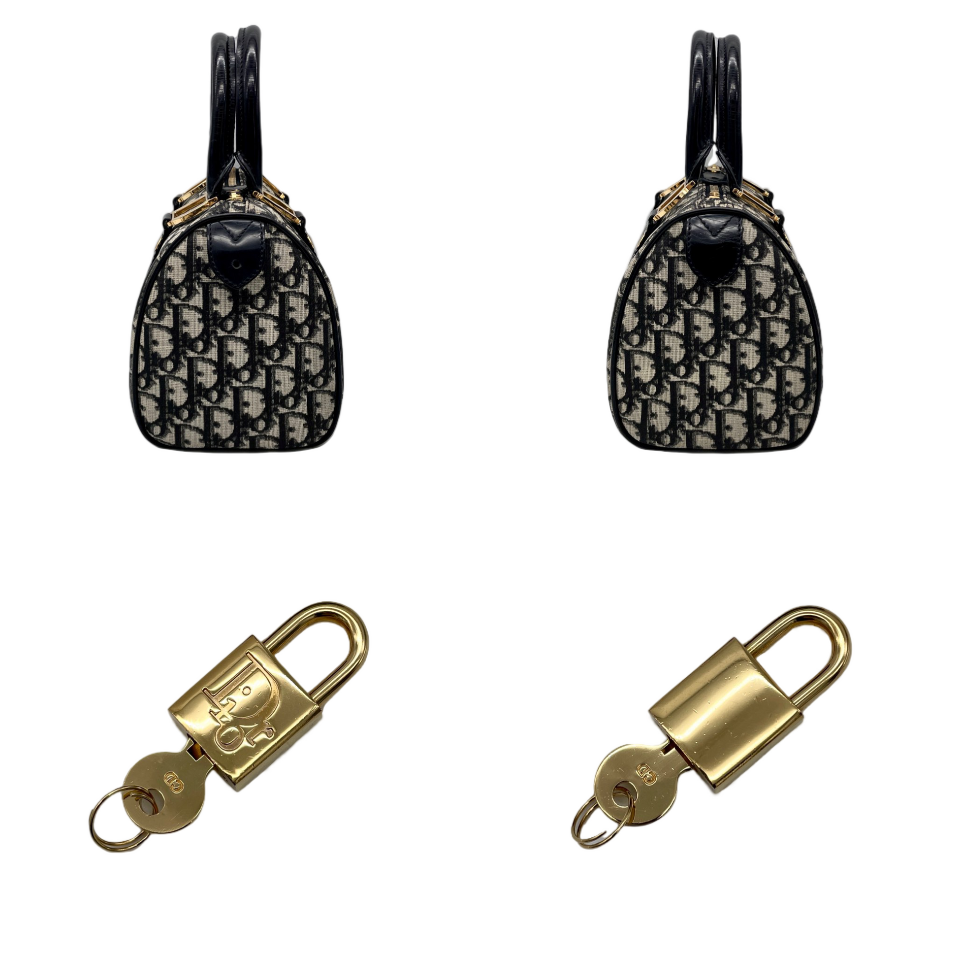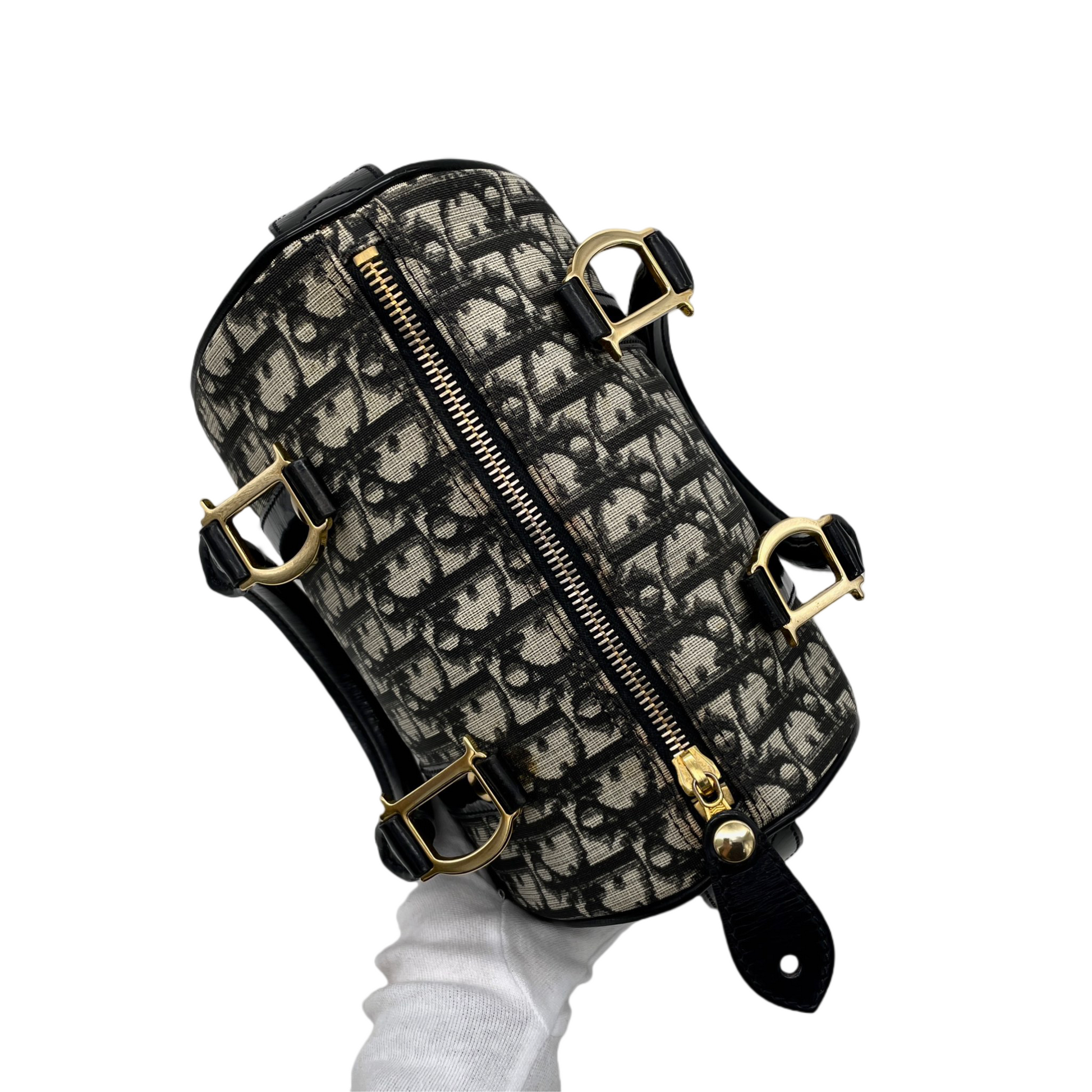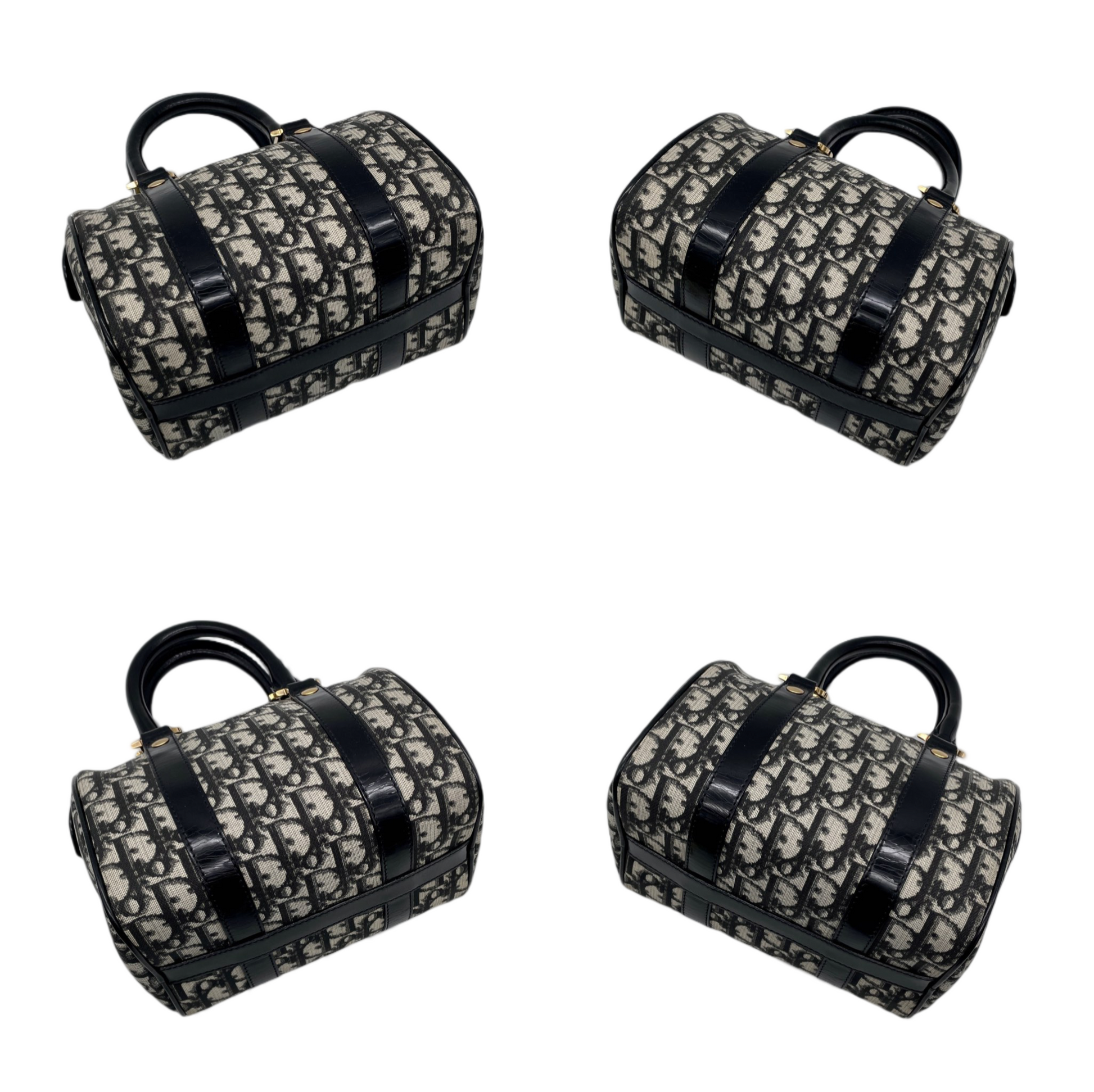 AUTHENTIC PRELOVED RARE☆☆☆CHRISTIAN DIOR 2004 Trotter PVC Mini Boston Handbag 20cm Navy & Gold