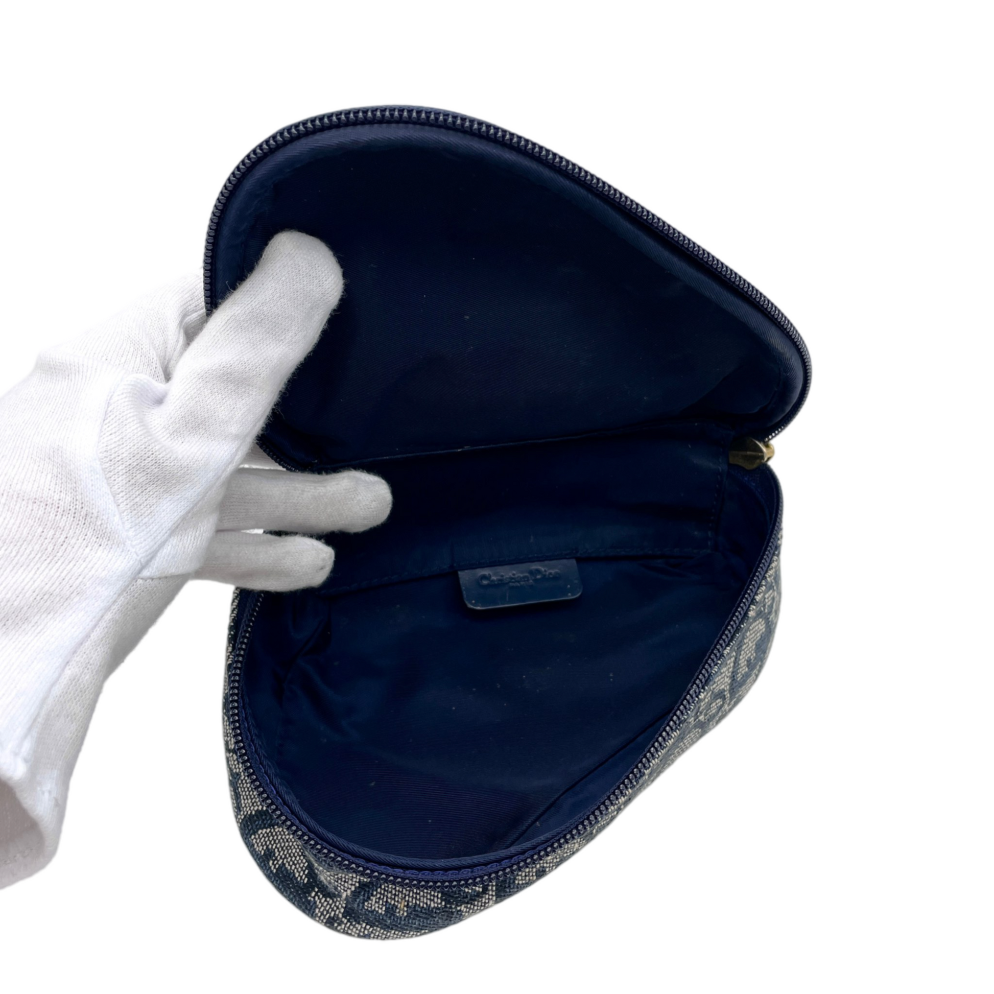 CHRISTIAN DIOR 2000 Trotter Canvas D Logo Pendant Mini Saddle Pouch Navy & Gold