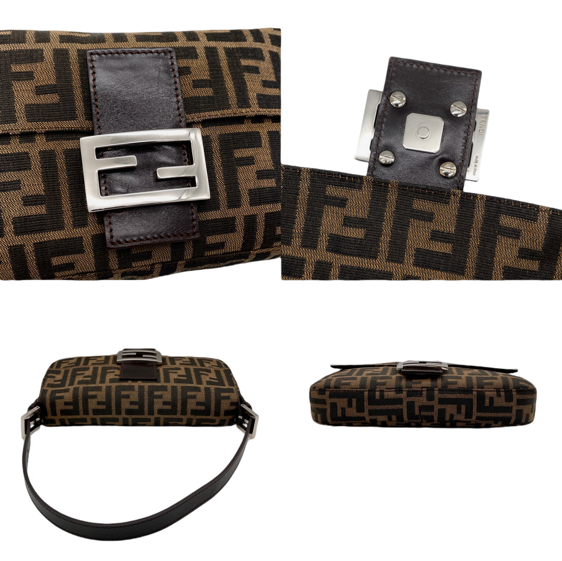 FENDI Zucca Canvas Mamma Baguette PM Shoulder Bag Brown & Silver