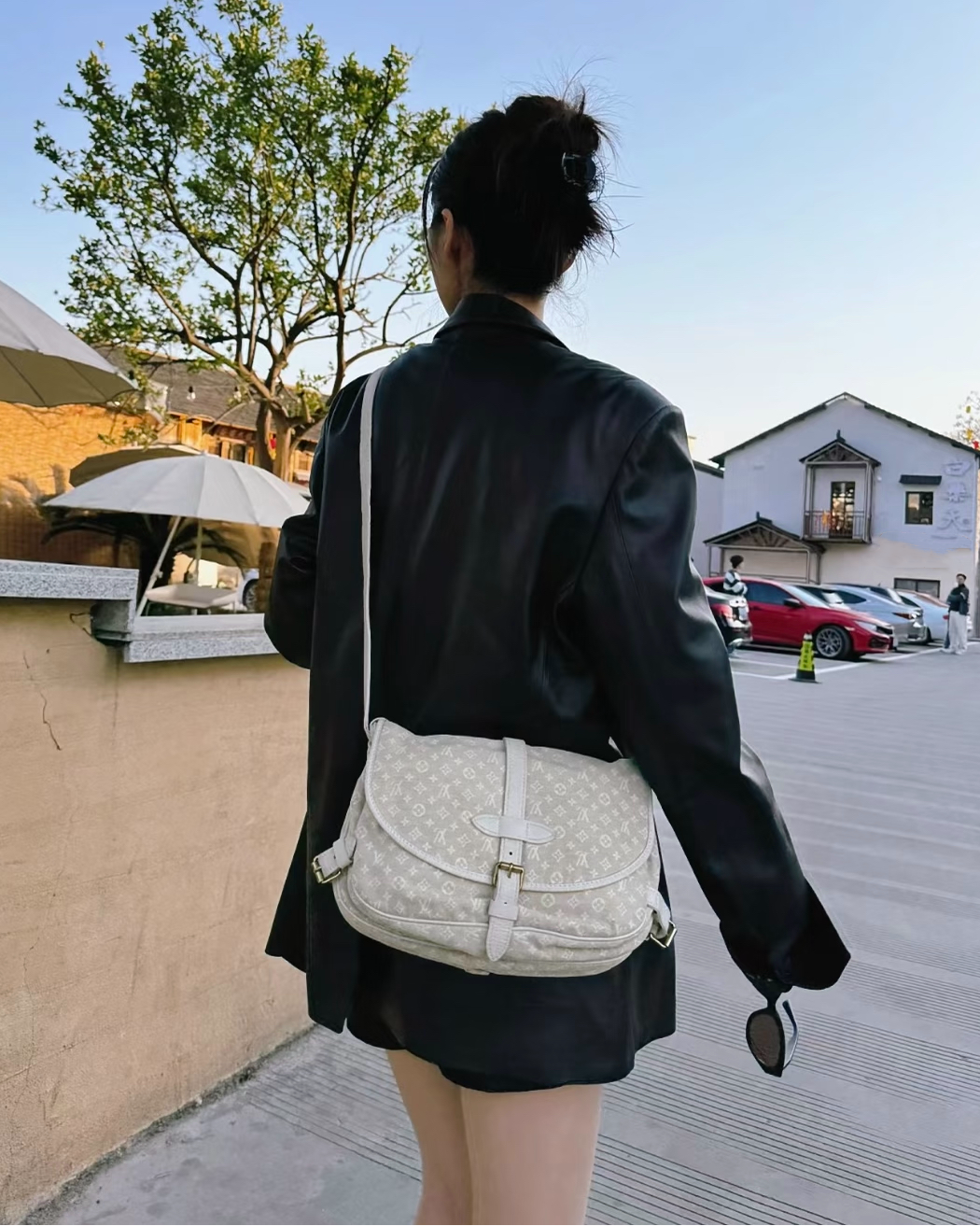 LOUIS VUITTON 2007 Monogram Mini Lin Saumur Shoulder Bag M95314 Beige & White