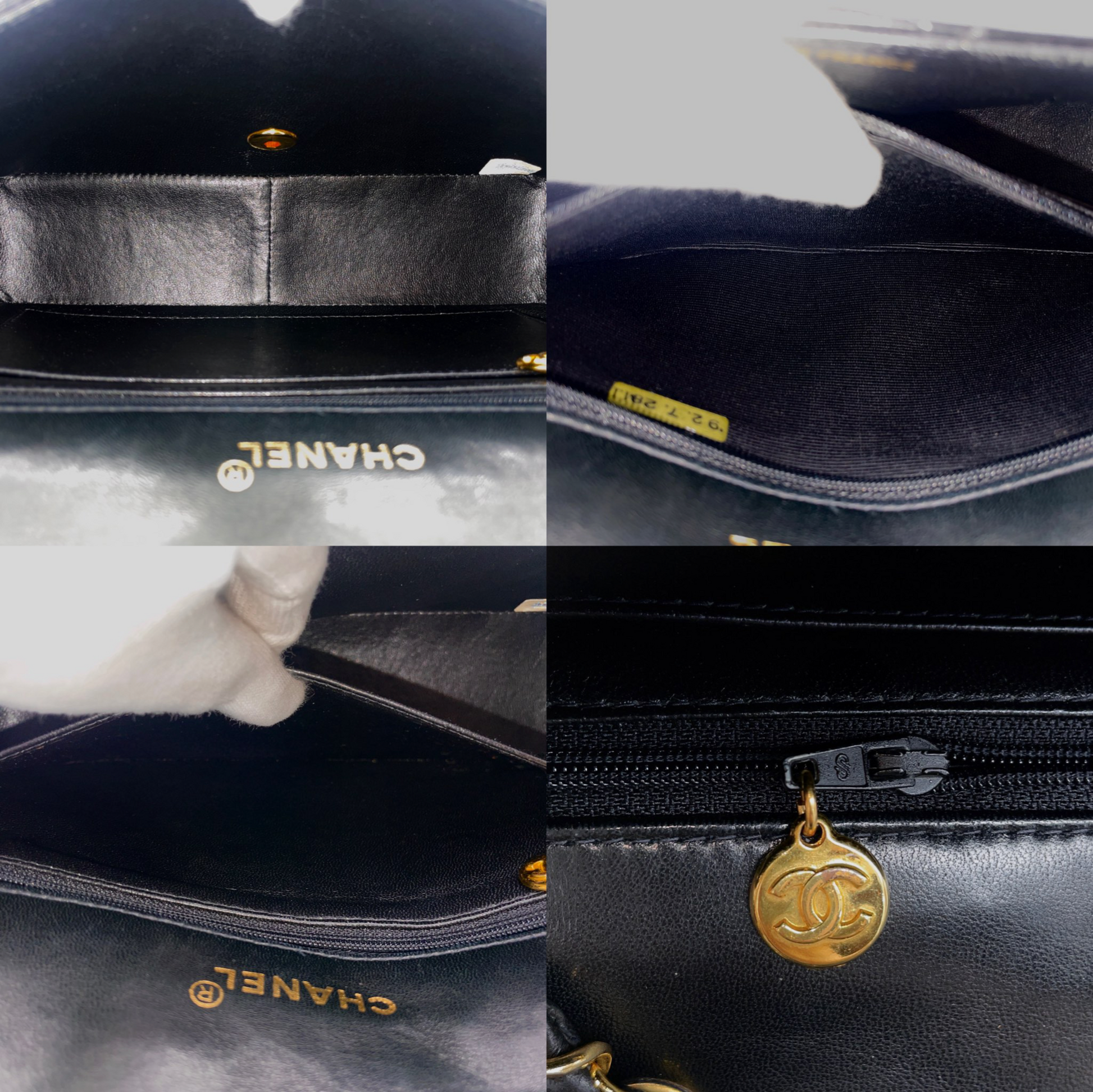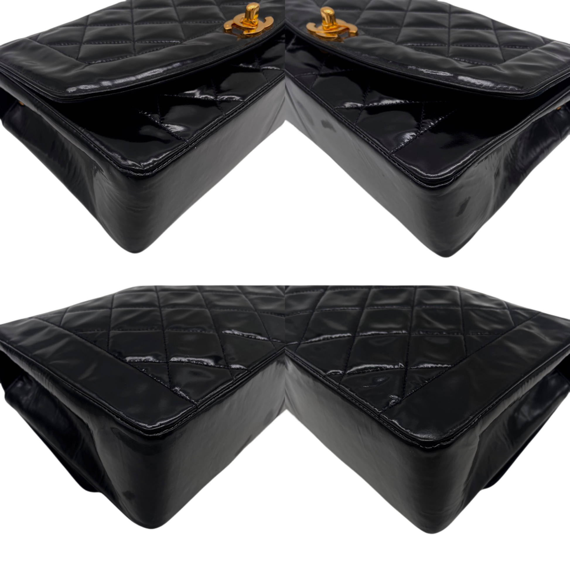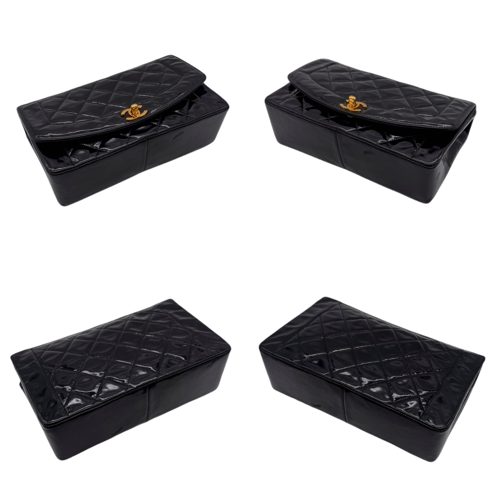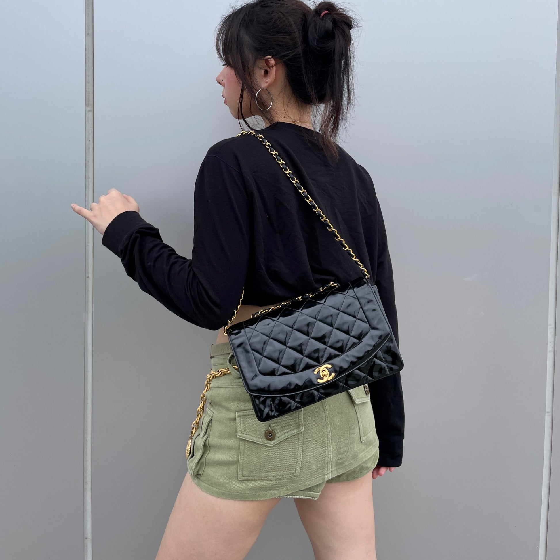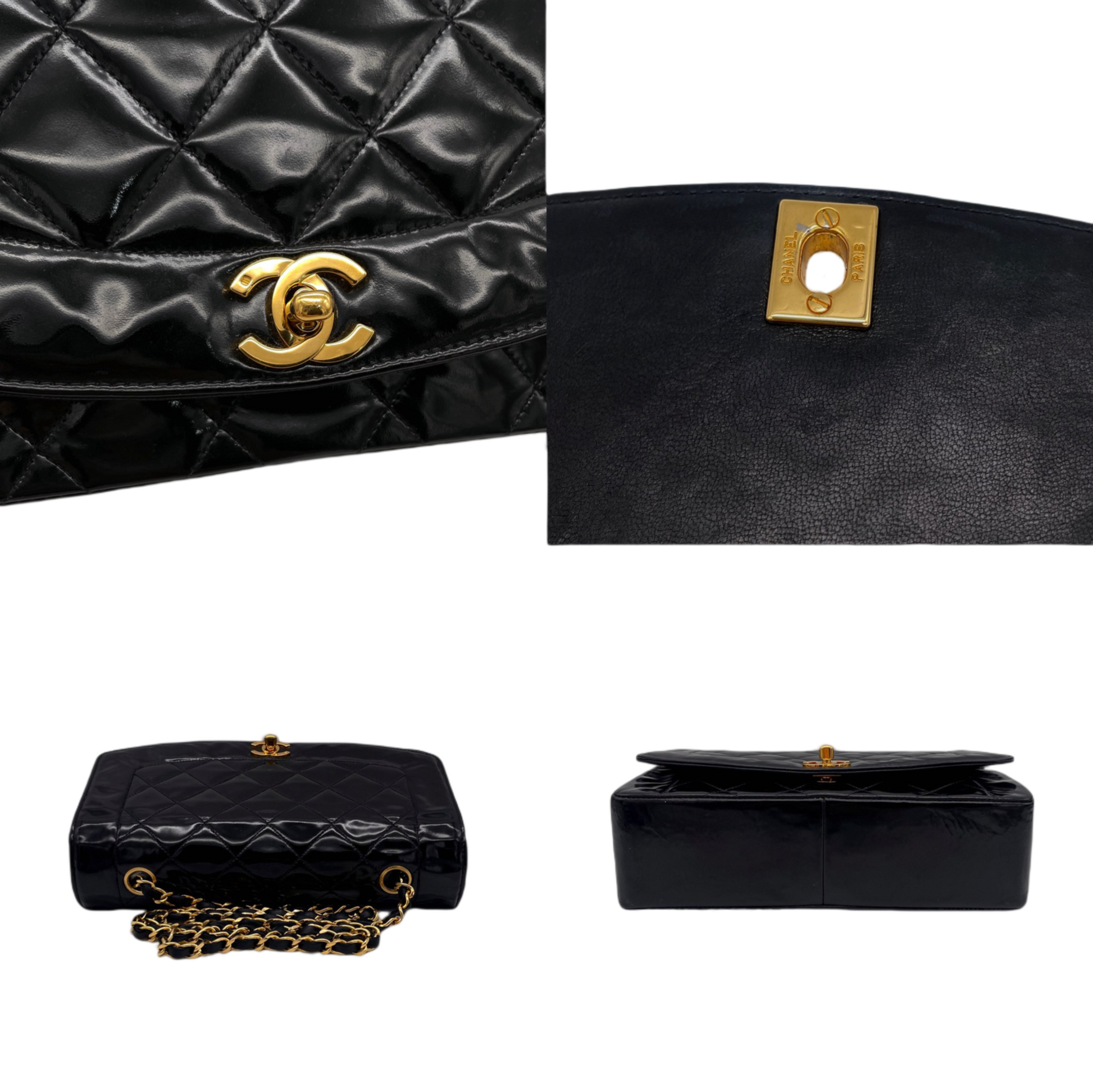 RARE☆☆☆CHANEL Matelassé Diana 25cm Enamel Leather Chain Shoulder Single Flap Bag Black & Gold