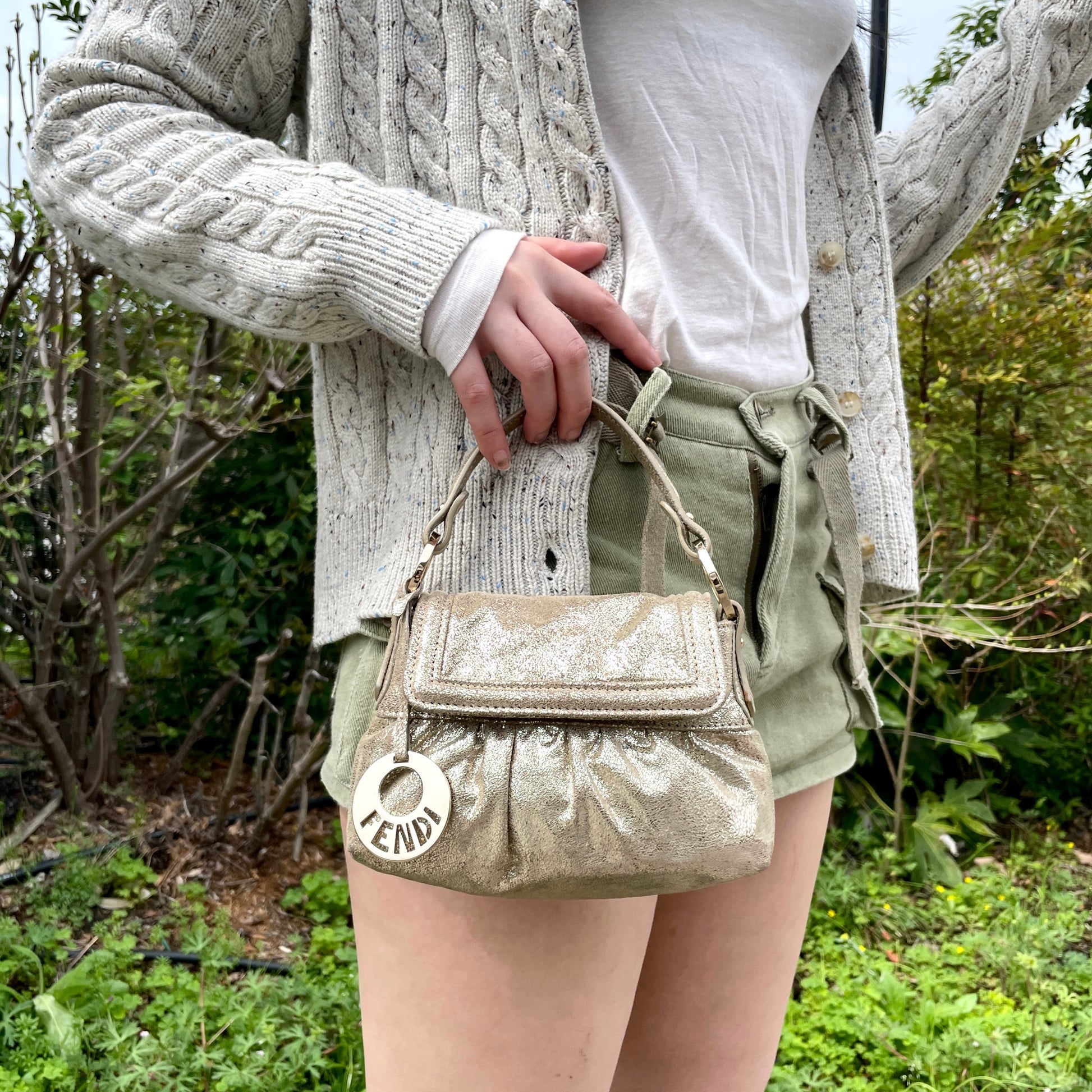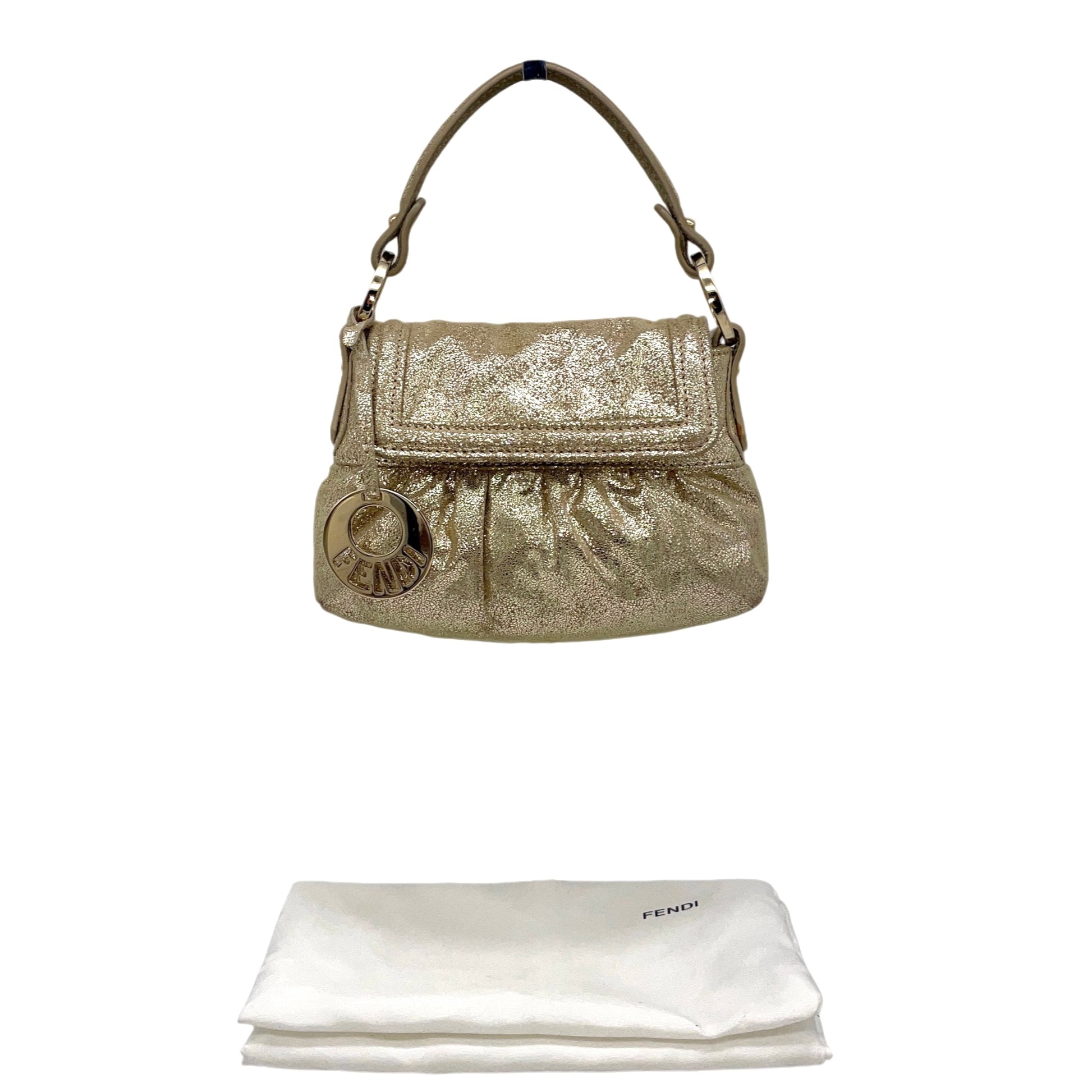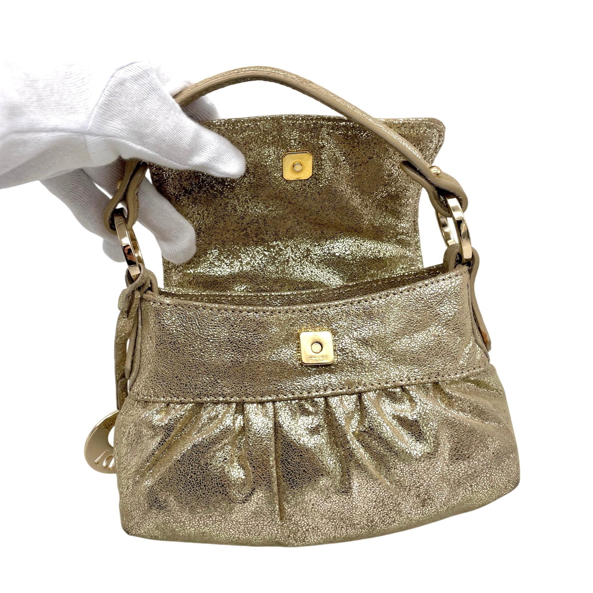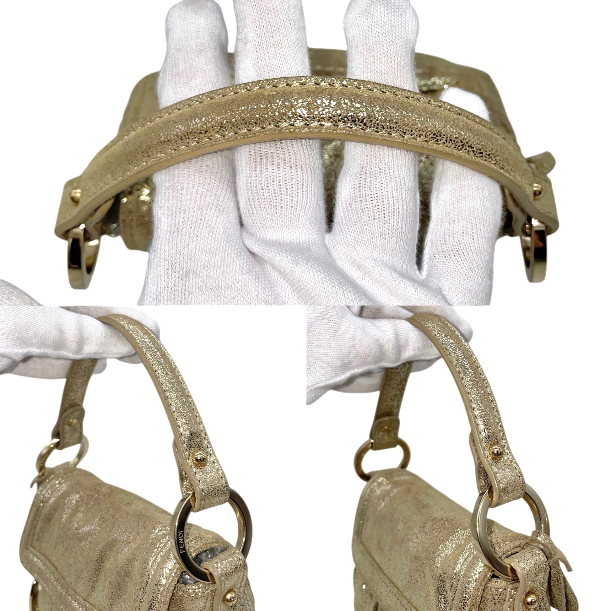 RARE☆☆☆☆FENDI Iridescent Calfskin Mini Baguette Chef Style Hand Bag Gold